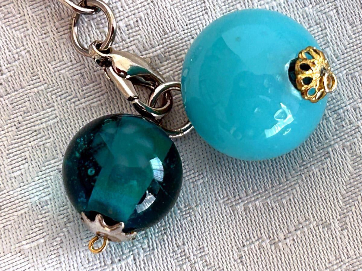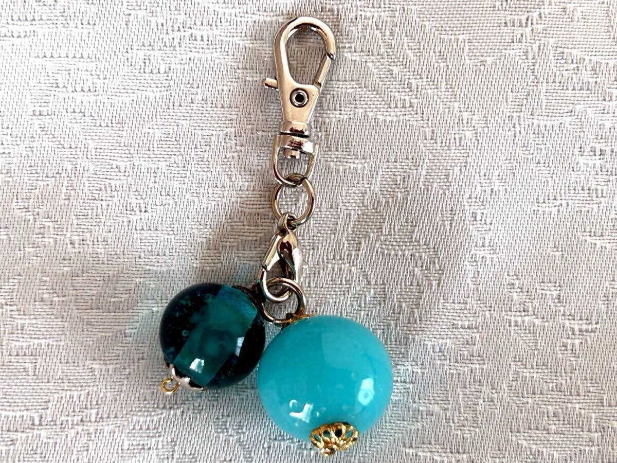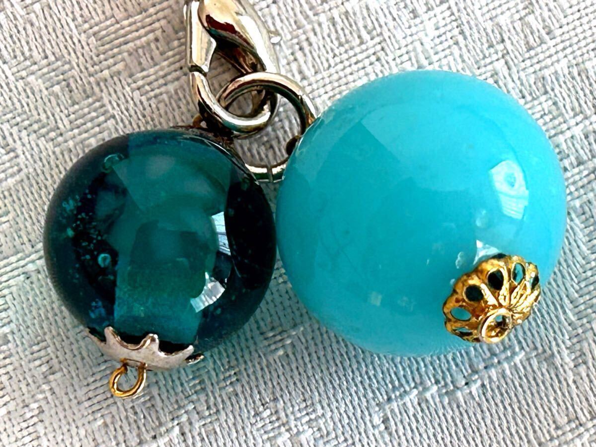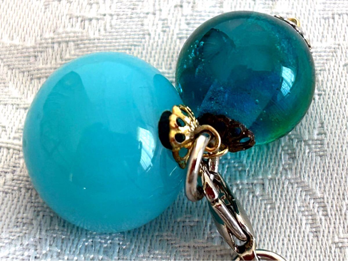 ・とんぼ玉は魔除けにもなると聞いて、九州へ出張する友達に頼んで購入して来て貰いました。ブルー系の大小のコンビが、涼やかで綺麗なチャームです。濃いブルーの方には薄っすら花柄があります。