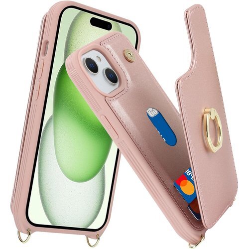 iPhone 15 ケース ショルダー リング付き ストラップケース スマホケース ショルダーケース ポシェット iPhone15 いphone15 アイホン 15ケース iPhone 15 アイフォン15 アイフォン15 カバー アップル 15 適用 case iCoverCase カードケース スタンド 斜め掛け 携帯カバー ピンク 888