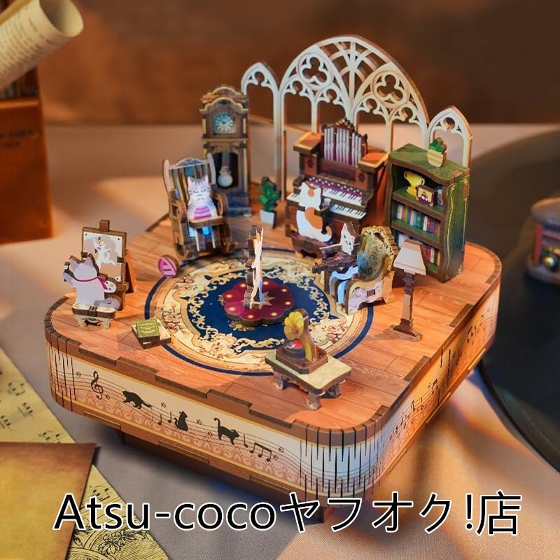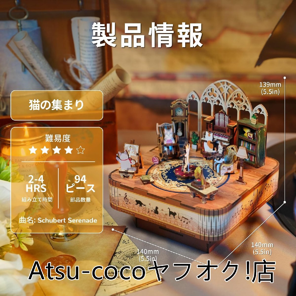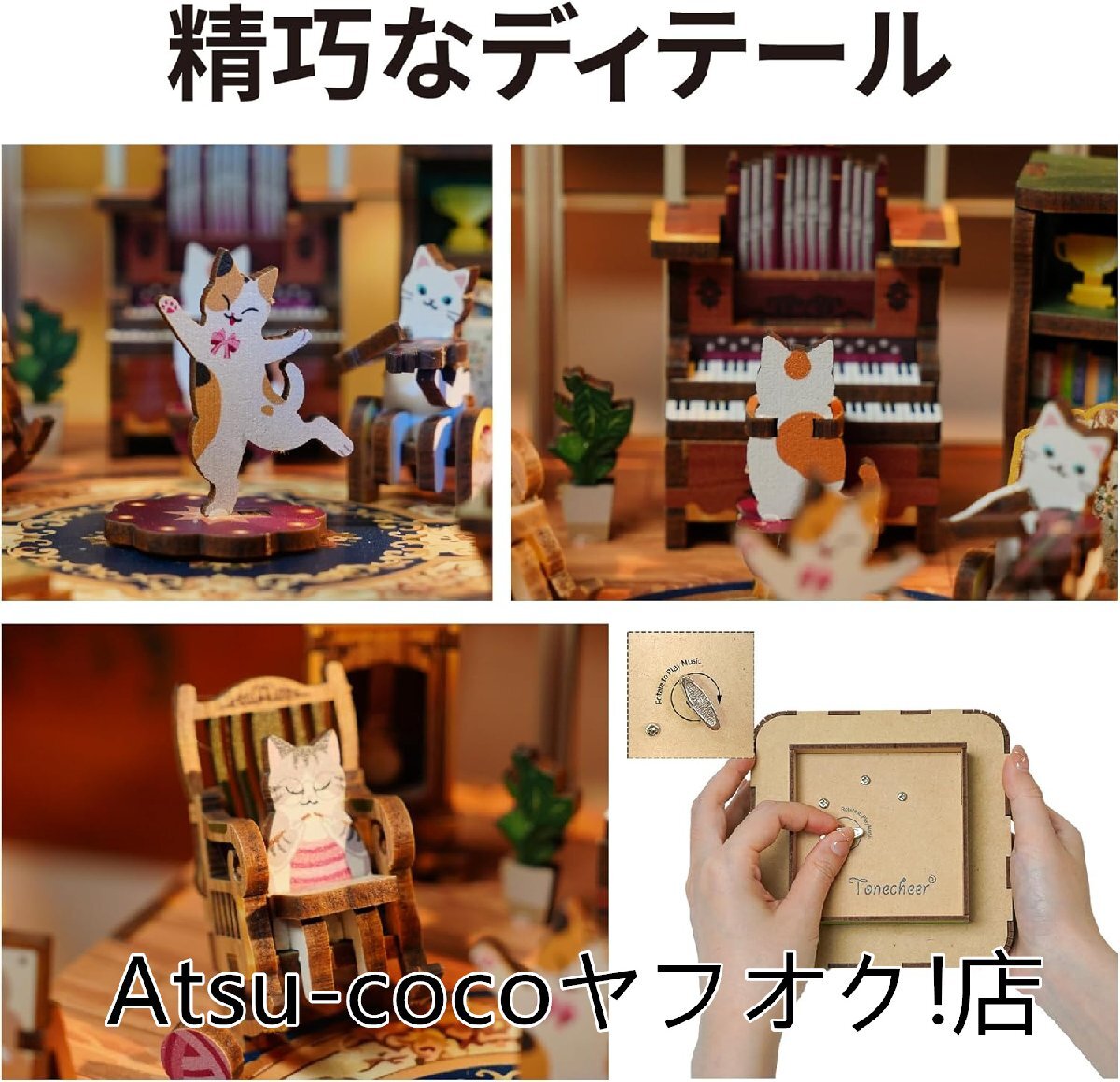 立体パズル3D木製パズルDIY音楽ボックス組み立てオルゴール時計仕掛け発条ウッド クラフト女の子大人誕生日 ギフト(猫の集まり)