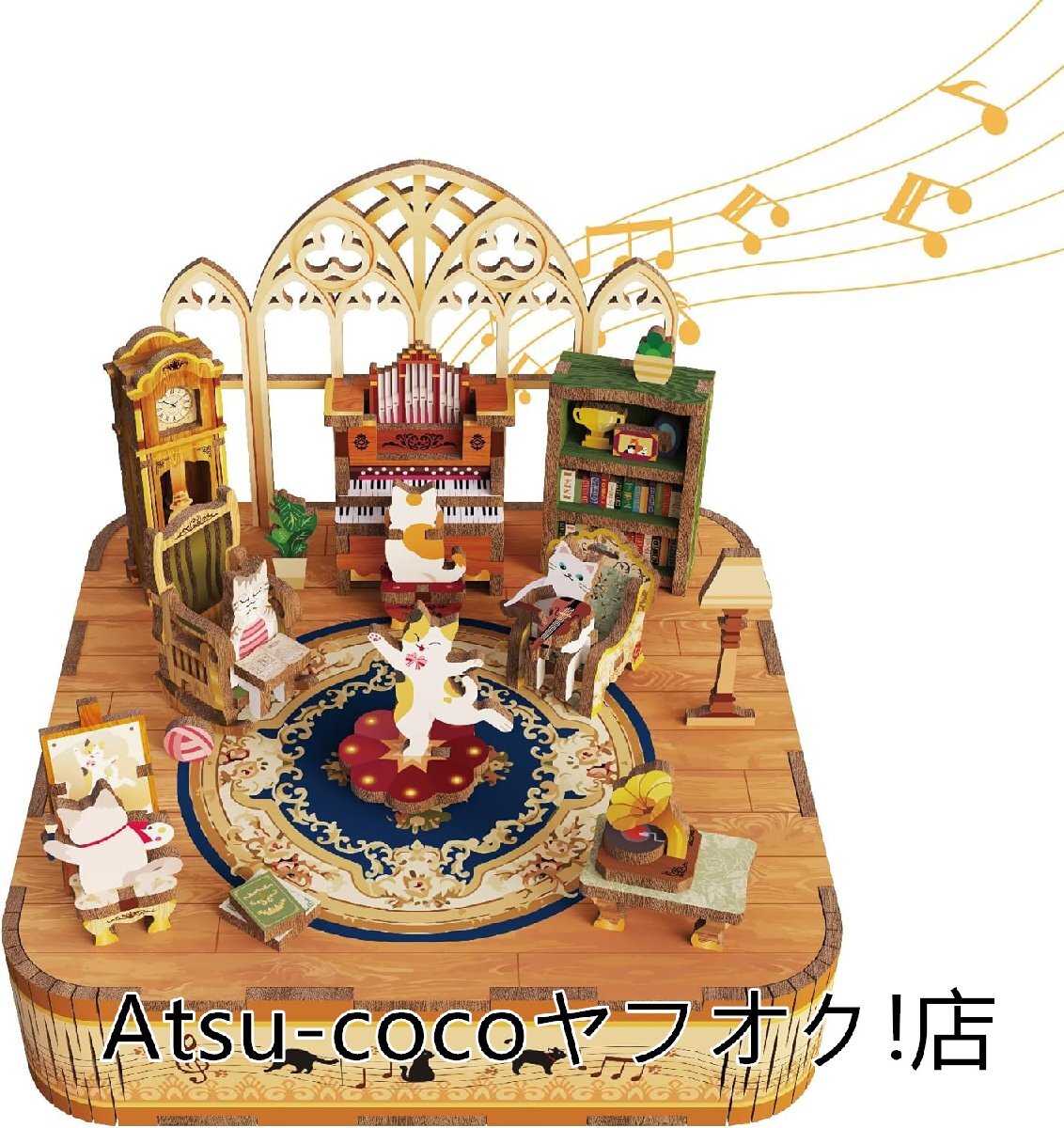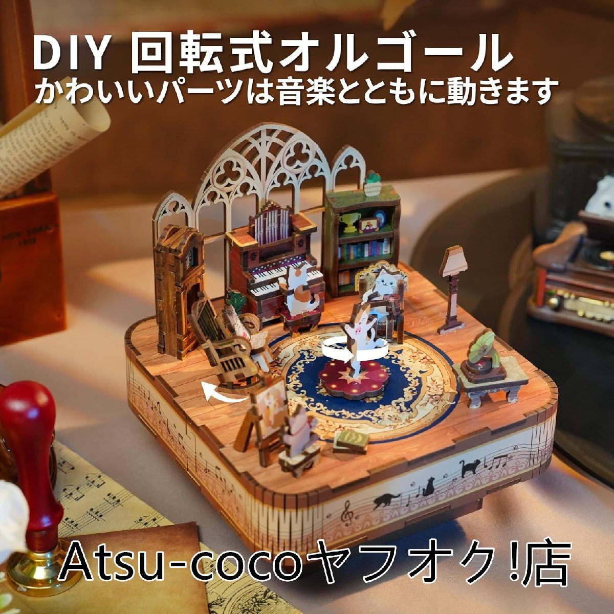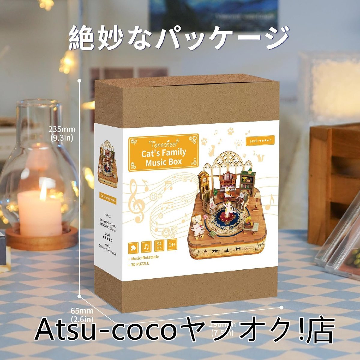 立体パズル3D木製パズルDIY音楽ボックス組み立てオルゴール時計仕掛け発条ウッド クラフト女の子大人誕生日 ギフト(猫の集まり)