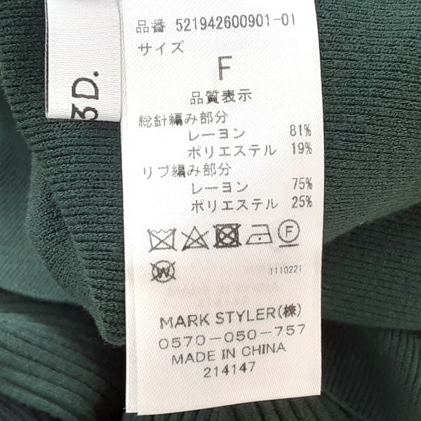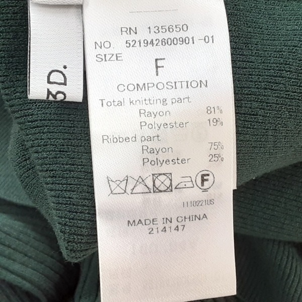 アンスリード UN3D. 長袖セーター/ニット サイズF - グリーン レディース ハイネック/変形デザイン トップス
