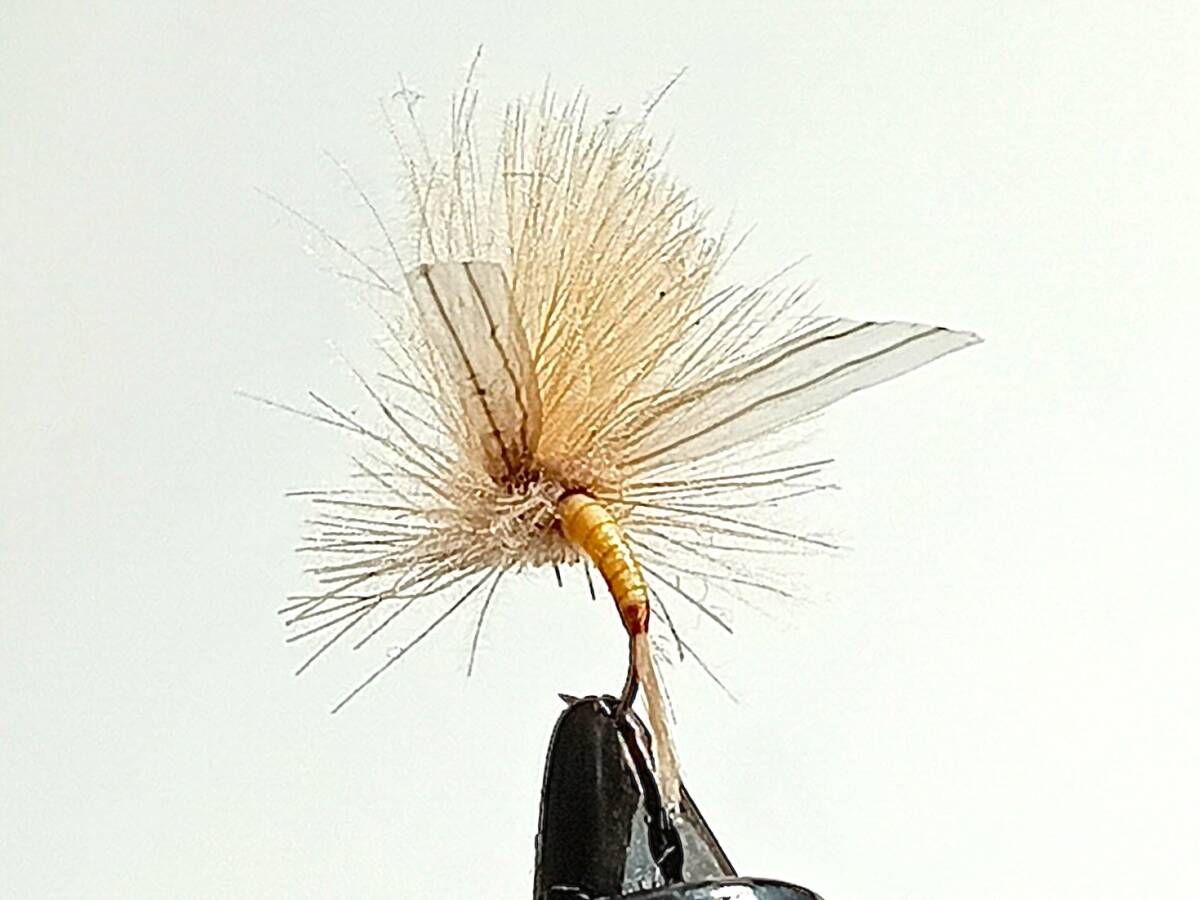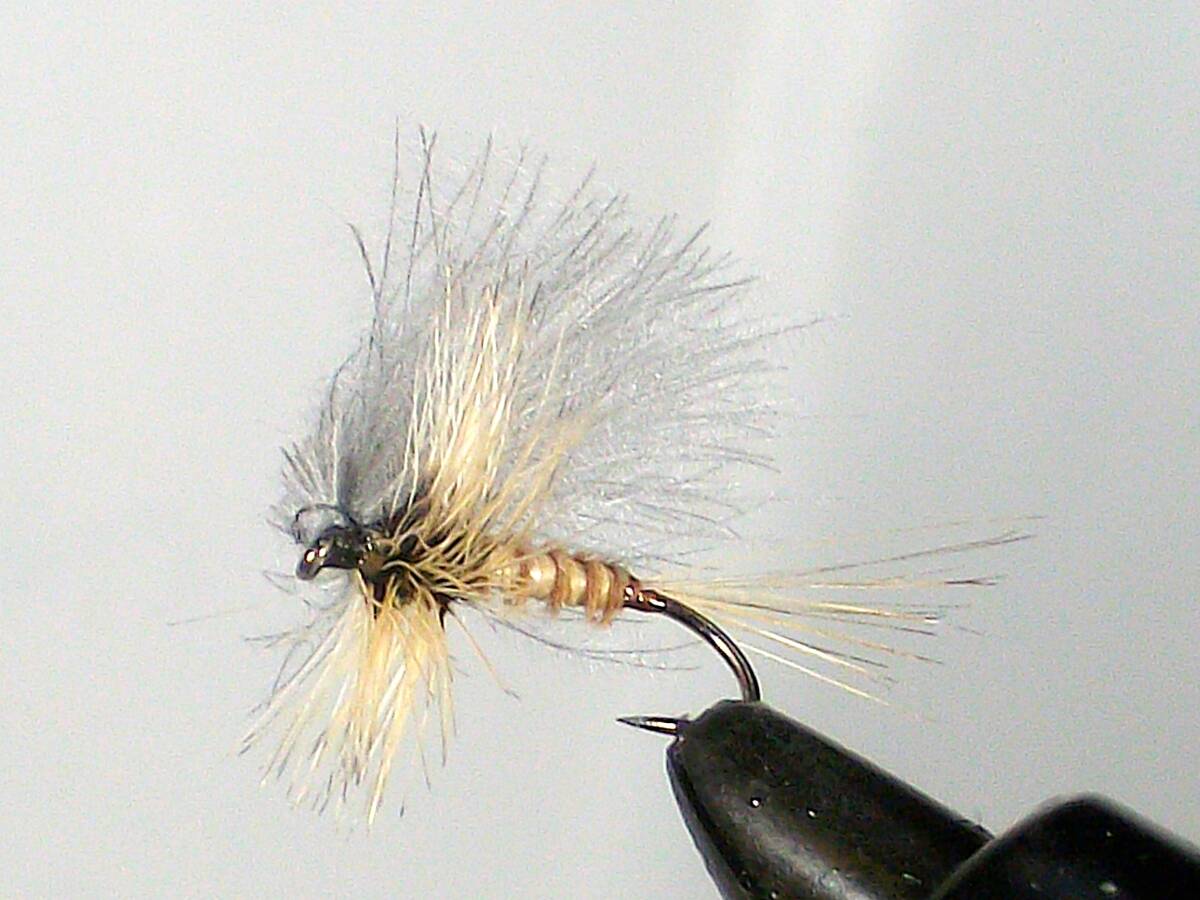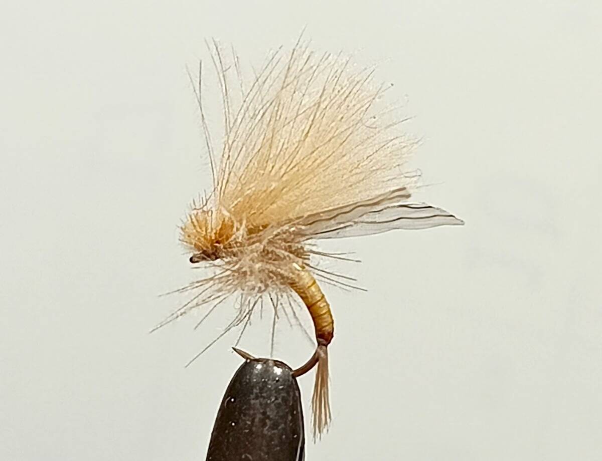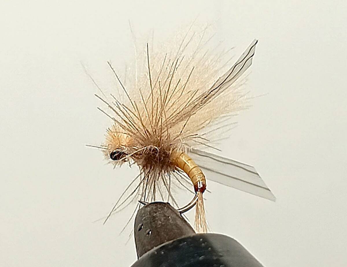 ソラックスとハックル部にはCDCのライトブラウングレーダンを