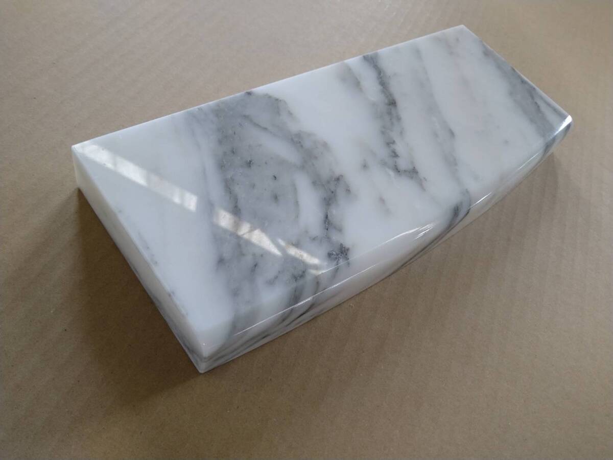 上面と正面、及び左右の小口(側面)は本磨き仕上げで、正面の上辺は10mmR面取り磨き仕上げです。