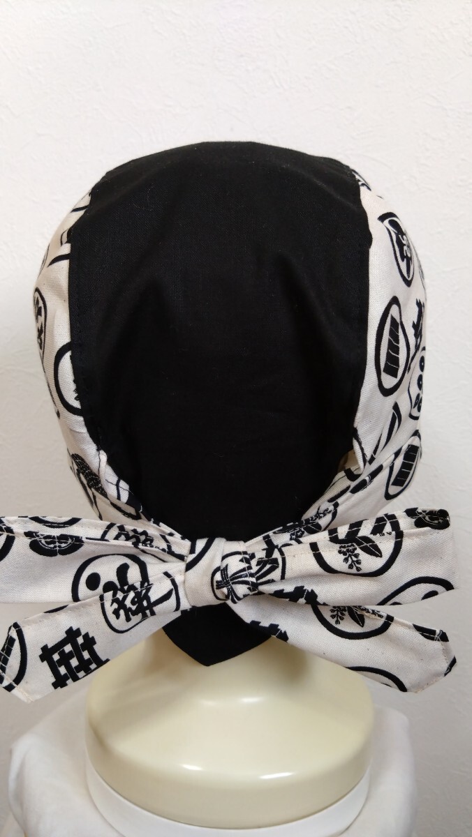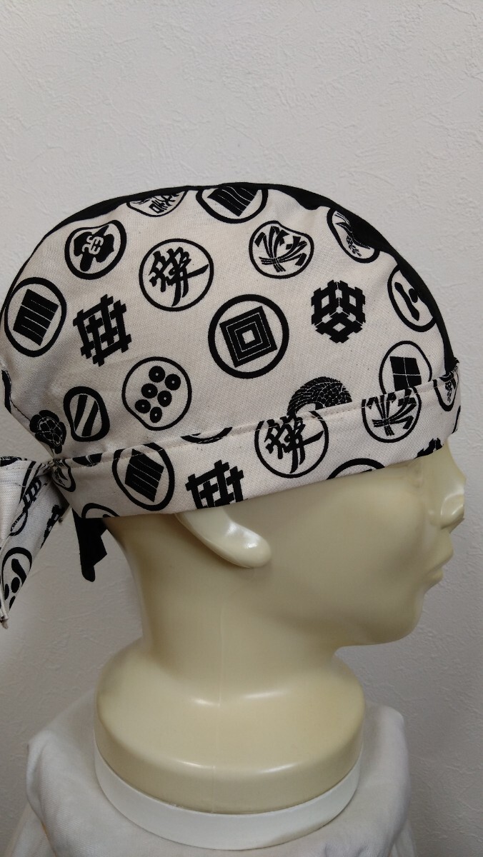 短★バンダナキャップ★ハンドメイド 和柄 家紋×無地 古典 生成り