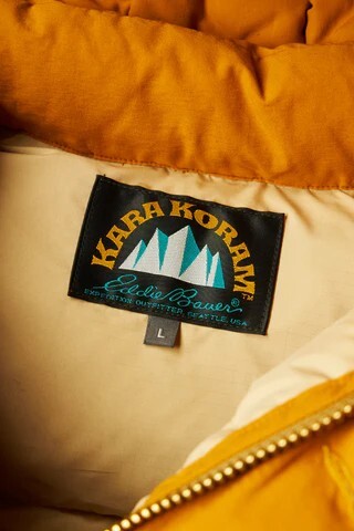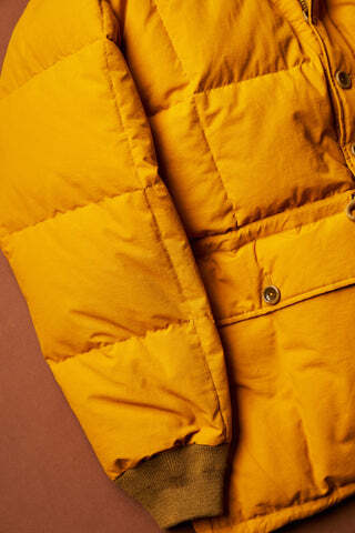 1920年、アメリカ・シアトルで創業した〈エディー・バウアー〉はアメリカではじめてダウンジャケットをつくったブランド。[スカイライナー]や[オールパーパス]など様々な名ダウンを生み出してきた。ここ数年、日本から撤退していたのだが、2023年日本に再上陸を果たした。そんな記念すべきタイミングの〈エディー・バウアー〉に2ndが別注を依頼。お願いをしたのはブランドの名作[カラコラム]の別注だ。ブランドのアイコンである[カラコラム]が生まれたのは1953年のこと、世界第2位の標高を誇る「K2」の初登頂を目指すアメリカの登山チームが〈エディー・バウアー〉に装備の依頼をし製作されたダウンジャケット。格子状のダウンパックと前立てのボタン仕様が特徴的なアイテムだ。12月に発売をした2nd 2/3月合併号の制作の際、アメリカ取材をきっかけに貴重な資料を大量に入手。1953年から現在に至るまで作り続けられている[カラコラム]を当時のカタログから読み込み、今までに存在しないカラーで別注を依頼した。完成したのはトラッドファッションとも相性が良く、落ち着いた印象になりがちの冬の装いにアクセントを持たせてくれるマスタードと、今までにもありそうで無かったクラシックアウトドアなグリーンの2色。日本再上陸後、初の別注という記念すべきアイテムが誕生した。