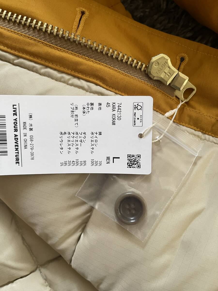 仕様もカラコラムの名にふさわしく本格派。アウトシェルはコットン/ナイロン混紡素材(マスタードはコットン64%・ナイロン36%、グリーンはコットン60%・ナイロン40%)となっている。肝心のダウンは90%・フェザー10%で700フィルパワー
