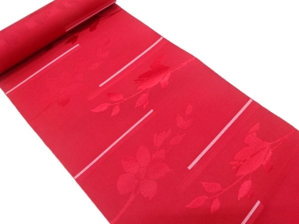 ys7334414; 宗sou 横段に花模様織り出し 八寸帯地反物【アンティーク】【着】