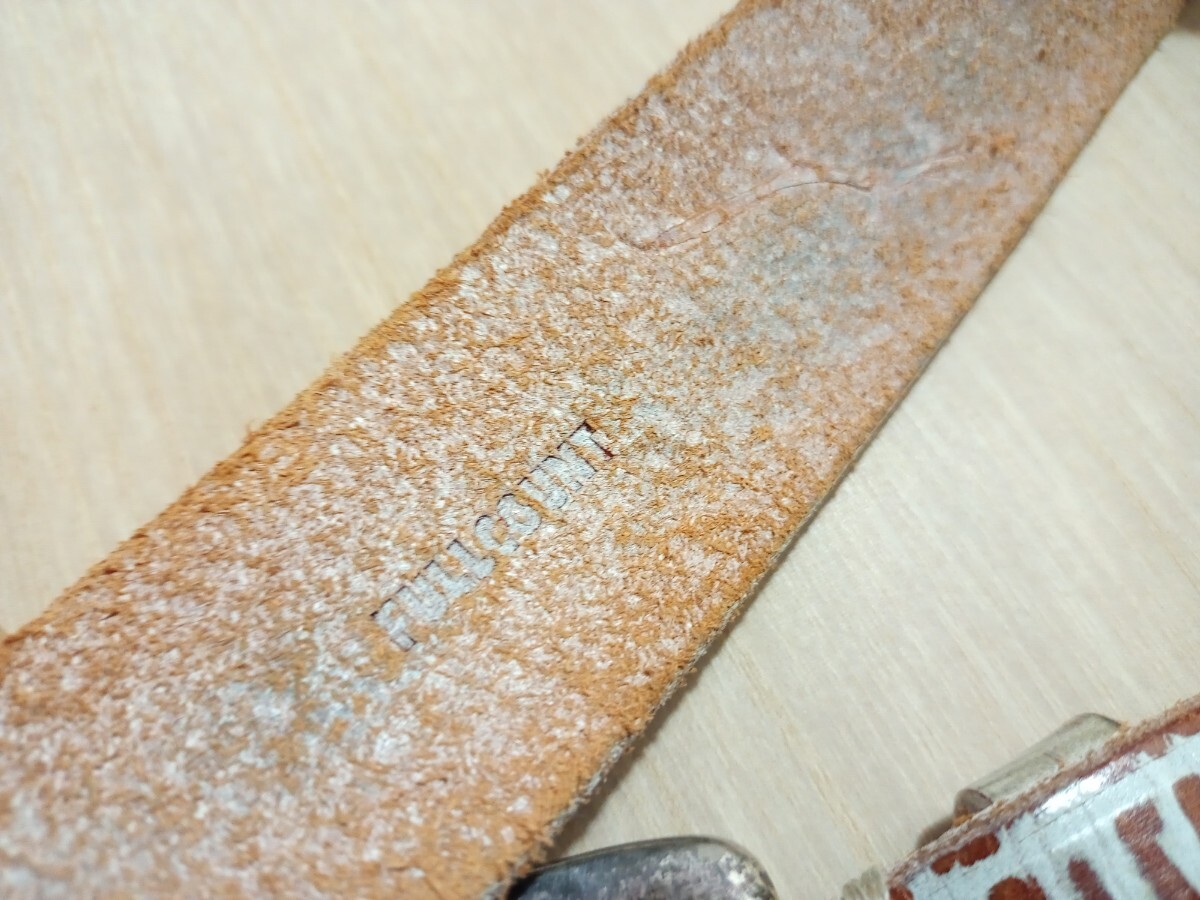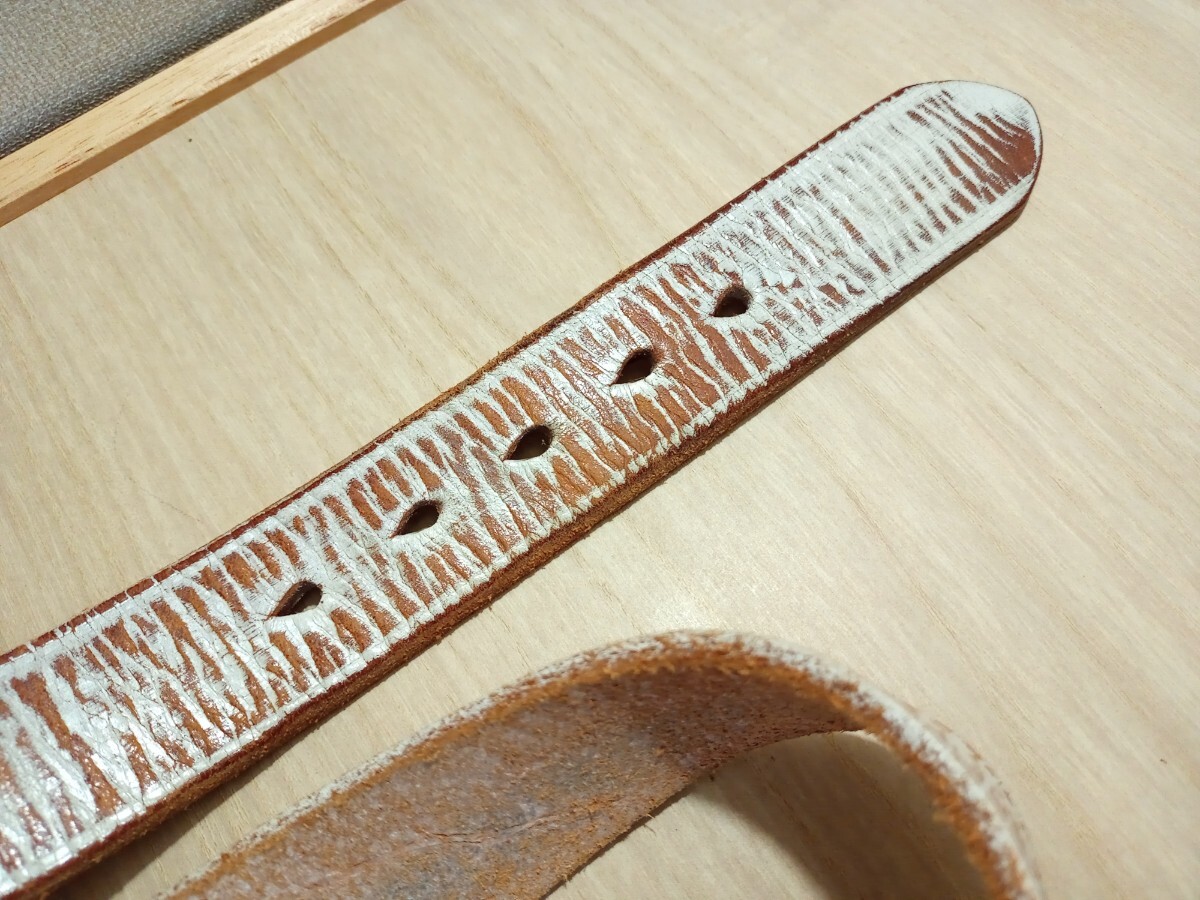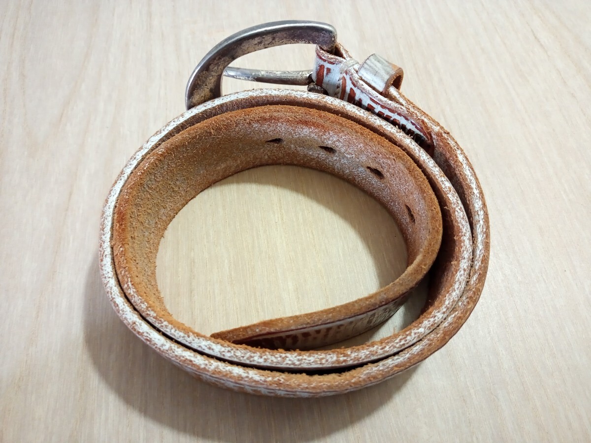FULL COUNT 一枚革ベルト ダメージ加工 サイズ32 ウエスト77cm~88cm 38mm幅 白色系