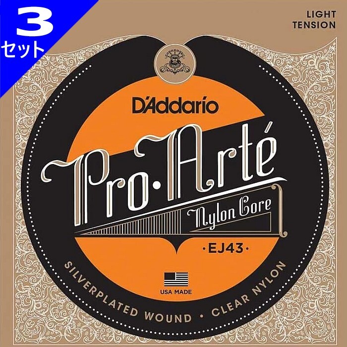 3セット D'Addario EJ43 Pro Arte Nylon Silver/Clear Light ダダリオ クラシック弦