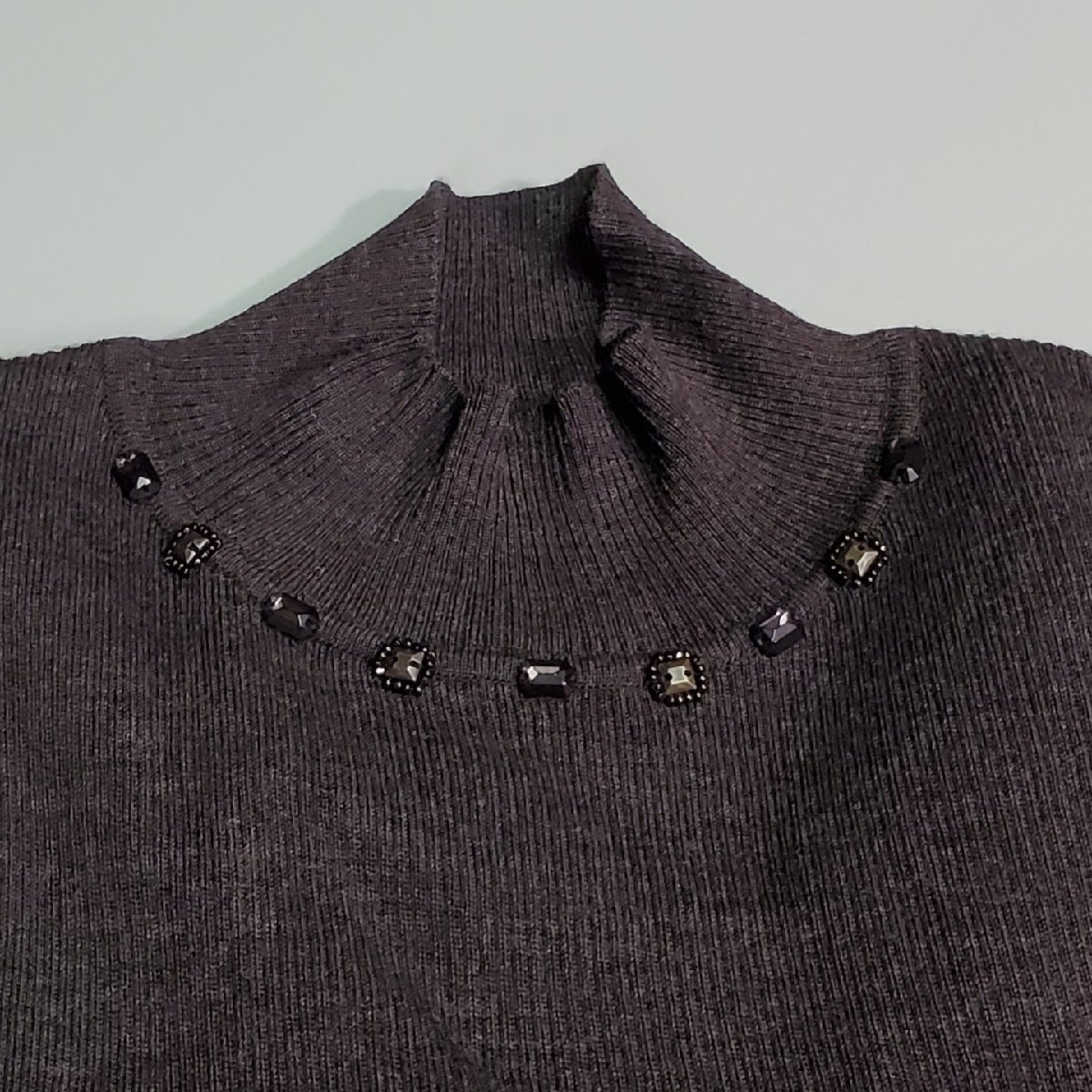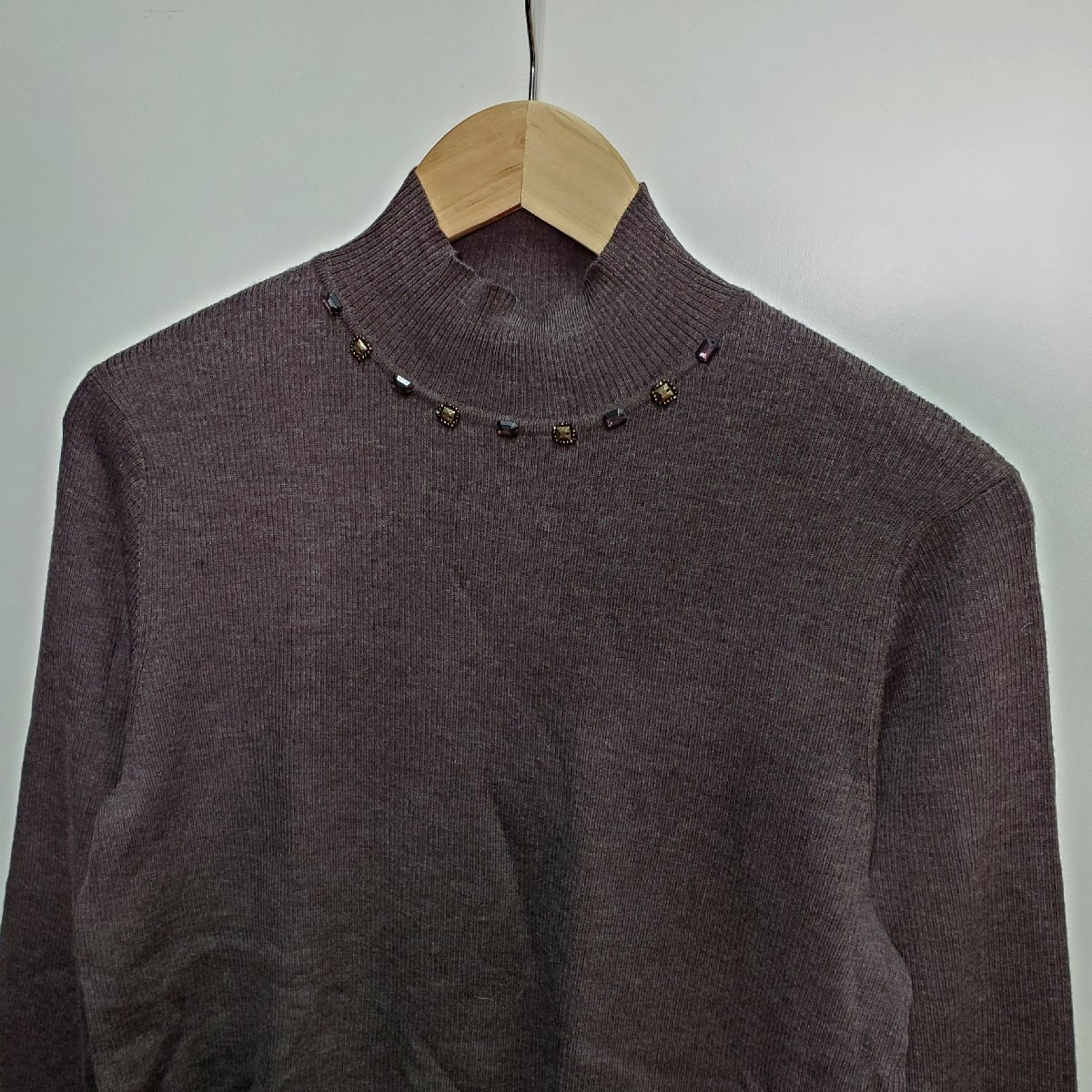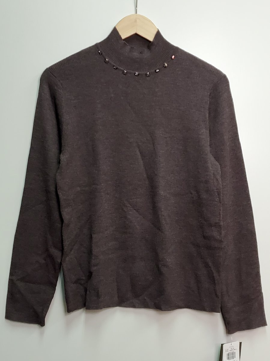 【宝蔵】未使用 レリアン Leilian ビジューニット トップス セーター 13+ 大きいサイズ ブラウン 茶 ハイネック 洋服 毛100% 定価33600円