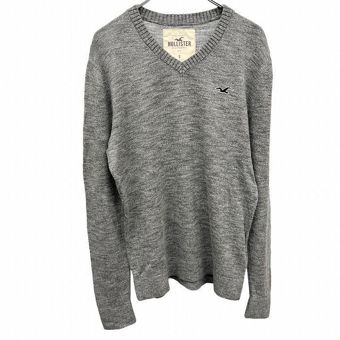 商品タイトル | ホリスター 薄手 ニット セーター カモメの刺繍 鳥 Vネック 長袖 綿×ビスコースなど S 杢グレー 杢グレー×黒×白 レディース(メンズ?) |