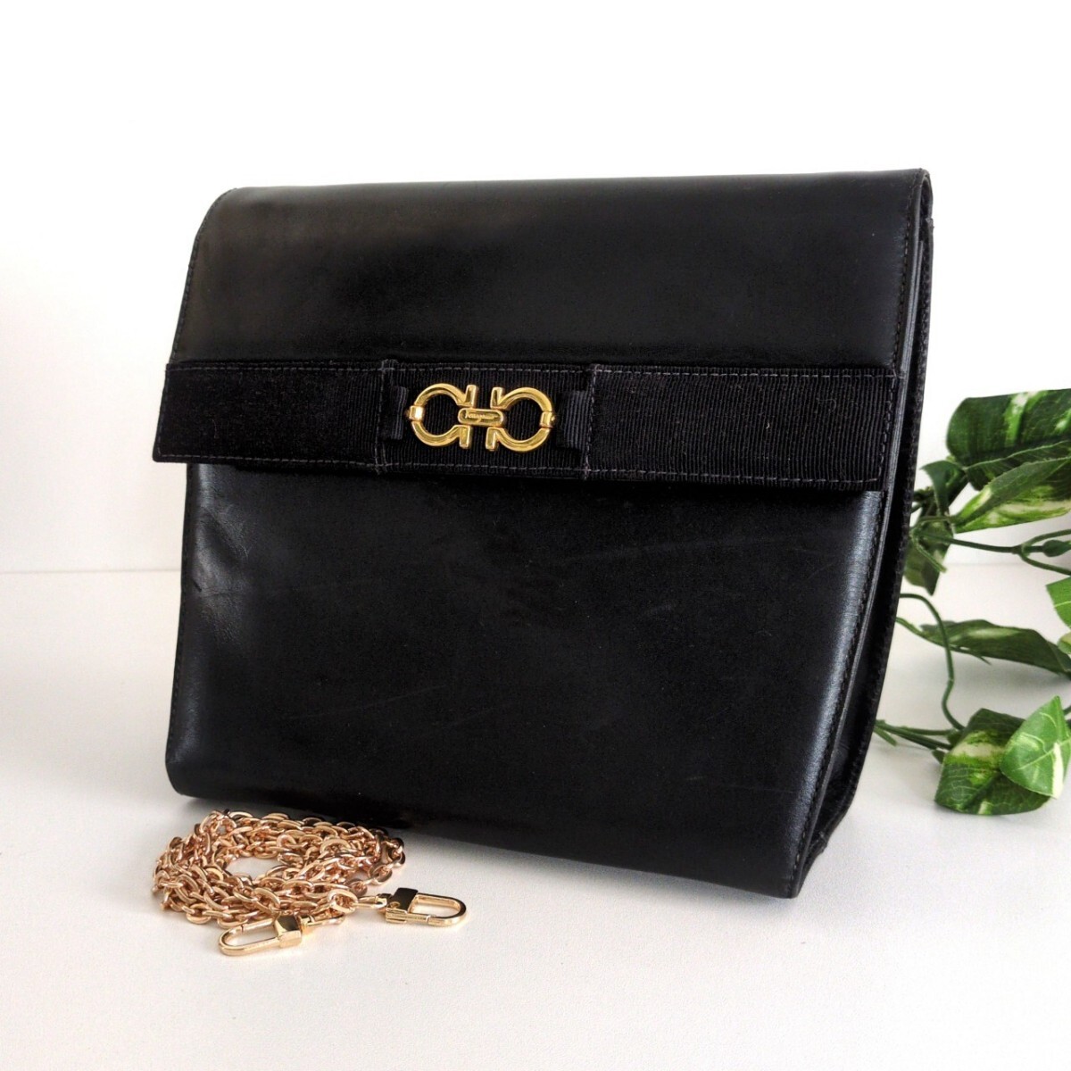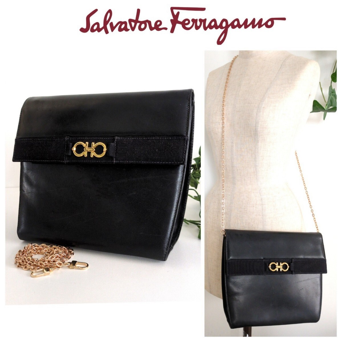 【商品】 Salvatore Ferragamo サルヴァトーレ フェラガモ ガンチーニ ヴィンテージ 本革 レザー チェーン ショルダーバッグ クラッチバッグ 斜め掛け 肩掛け クロスボディ 鞄 レトロ アンティーク クラシック オールド VINTAGE 90s イタリア製