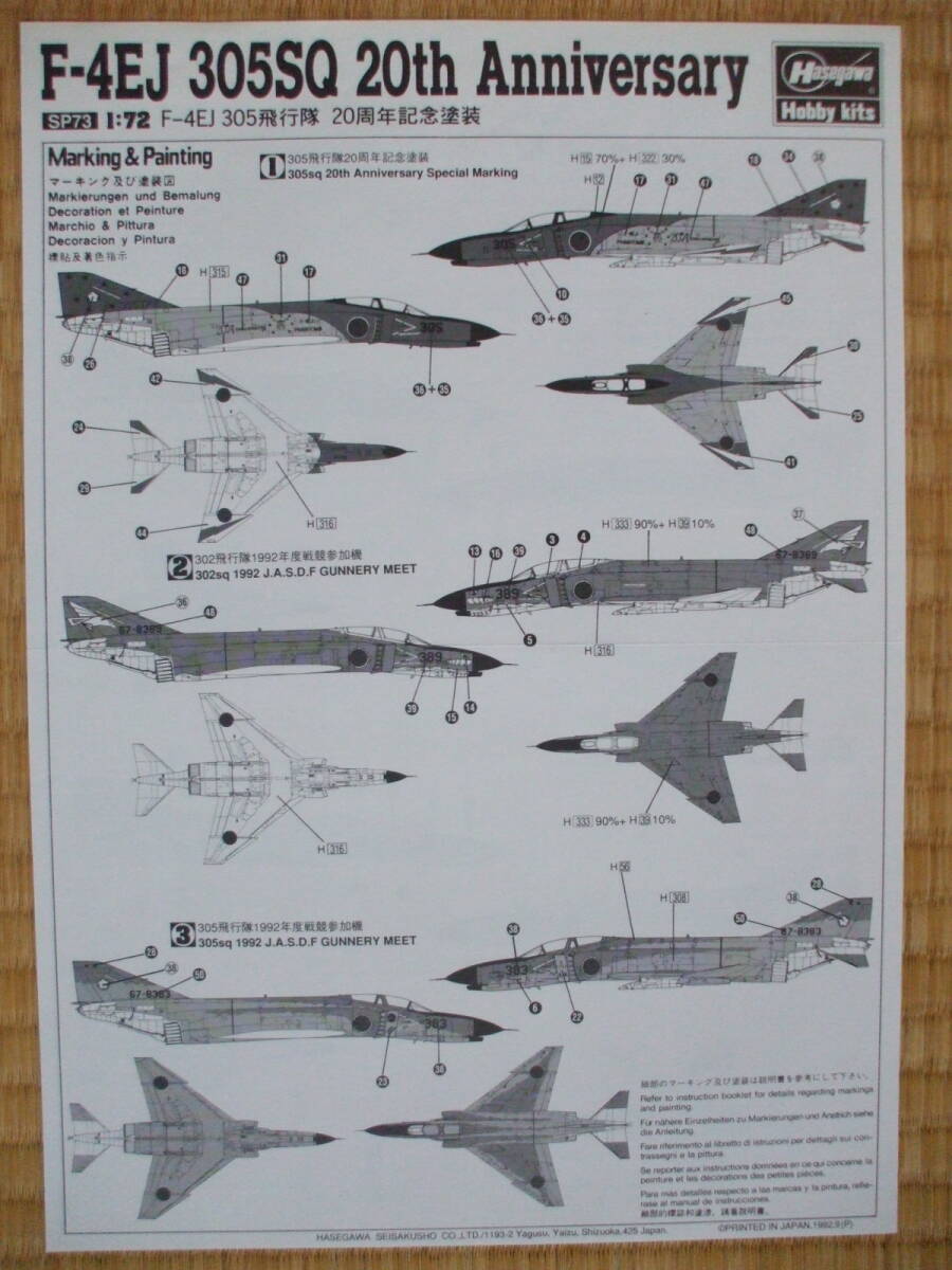 <限定品>ハセガワ、1/72、SP73、F-4EJ“305飛行隊20周年記念塗装機および1992戦競参加機”(EJ改作成可)