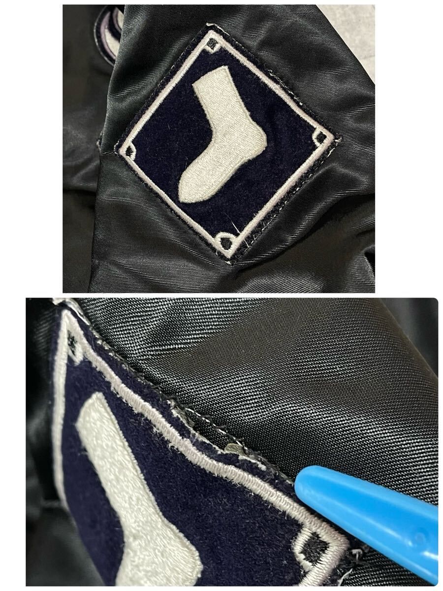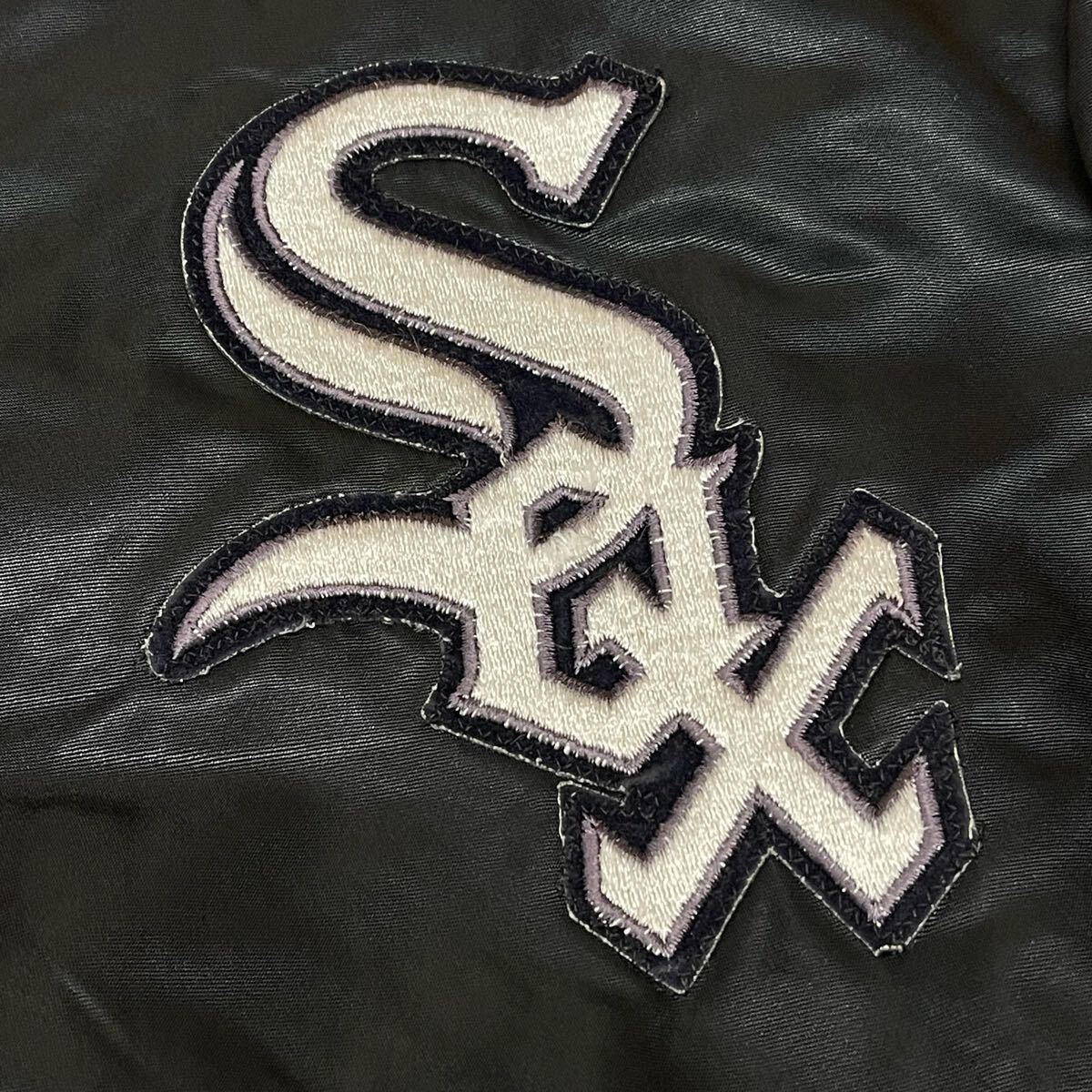 80s ホワイトソックス スターター USA製 ナイロン スタジャン MLB   80年代 vintage 裏地キルティング ダイヤモンドコレクション YL1808 アメリカ製 MADE IN USA ヴィンテージ ビンテージ Diamond COLLECTION by STAETER ブラック 襟リブ無し ブラック 黒