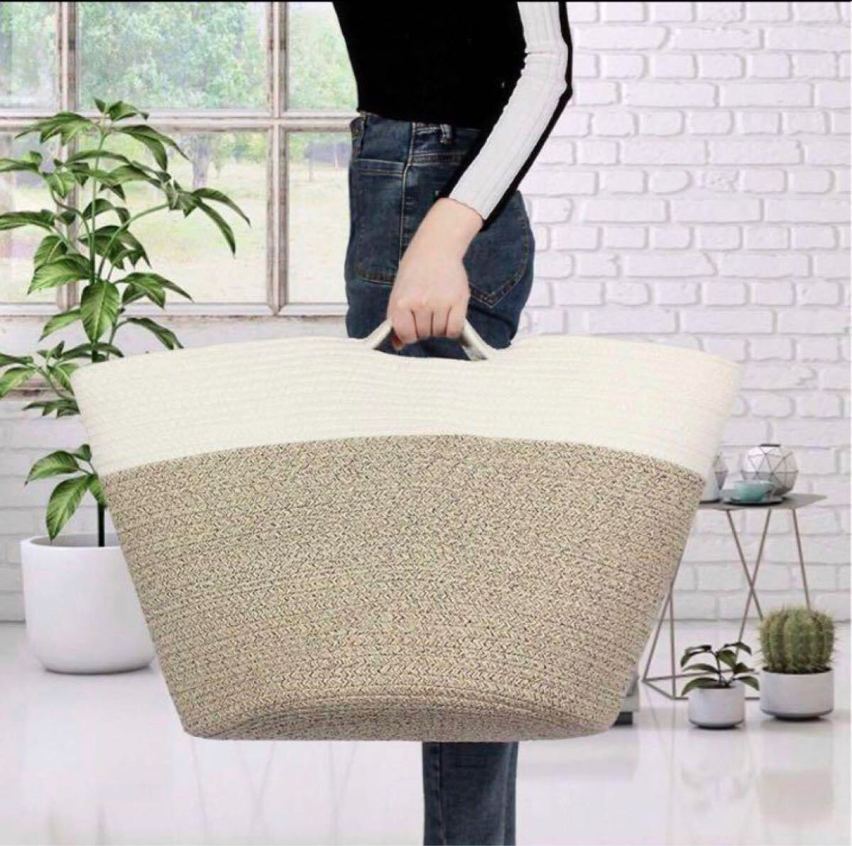 優れる素材:100%天然綿ロープ素材で作られるコットンロープバスケット、ランドリー バスケット、安全で健康的、化学薬品なし、触感が抜群し、環境に優しい丈夫です。しっかりした、 厚みがあって、形がくずれにくく、重たいものでも安心して入れられます。