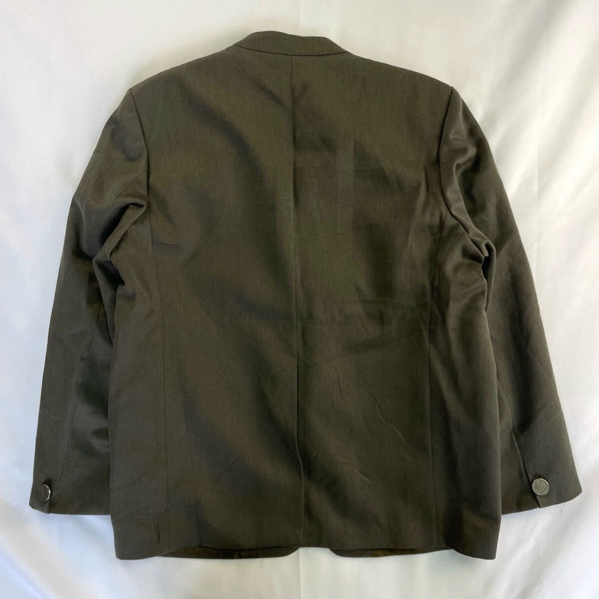 ポイント: 幅広い季節に着れる着心地のいいポリエステルとウール素材にサラサラとしたビスコースの裏地、エスニック感のあるバンドカラーに落ち着いたモスグリーンをベースに象徴的な硬貨のような大きめなメタルボタンや襟やポケット付近の刺繍が素敵な1枚です。