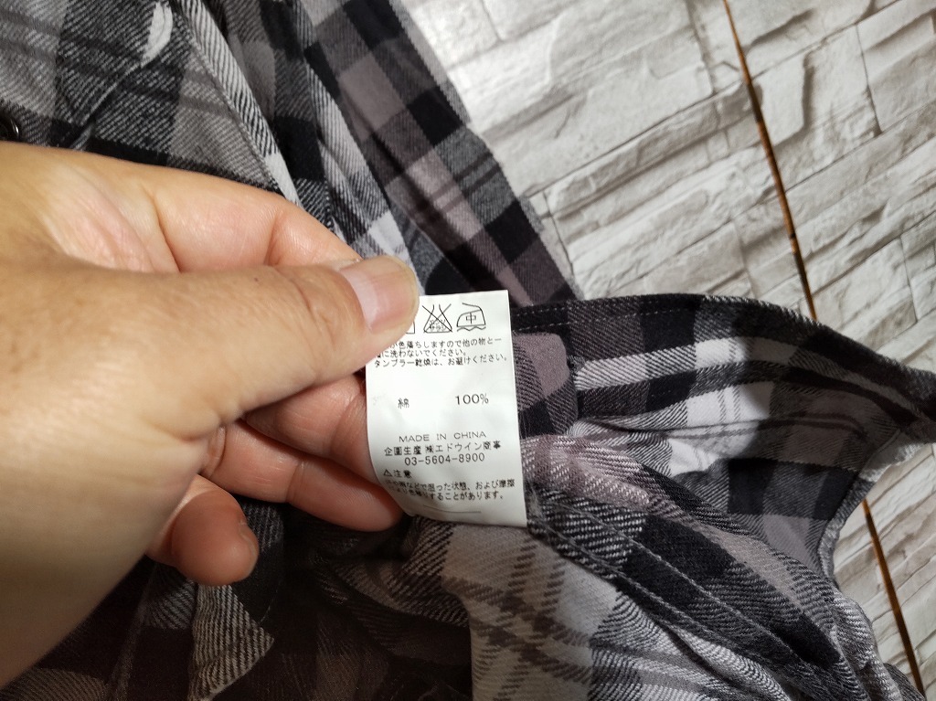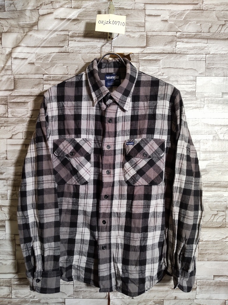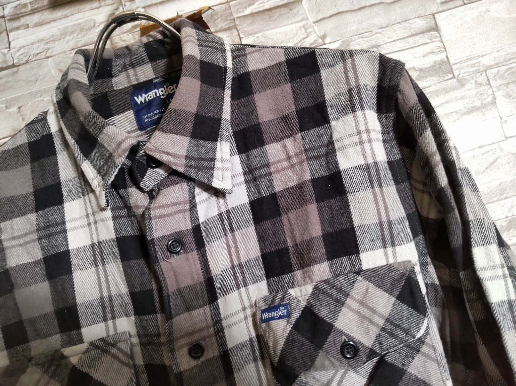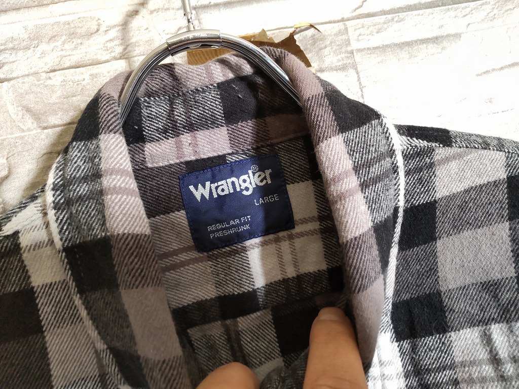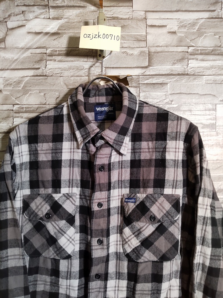 men's I543 Wrangler ラングラー チェック柄 長袖 ネルシャツ L ブラック/グレー ヘビーネル