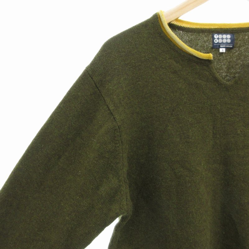 タケオキクチ TAKEO KIKUCHI ニット セーター 長袖 キーネック プルオーバー 4 カーキ /GV メンズ