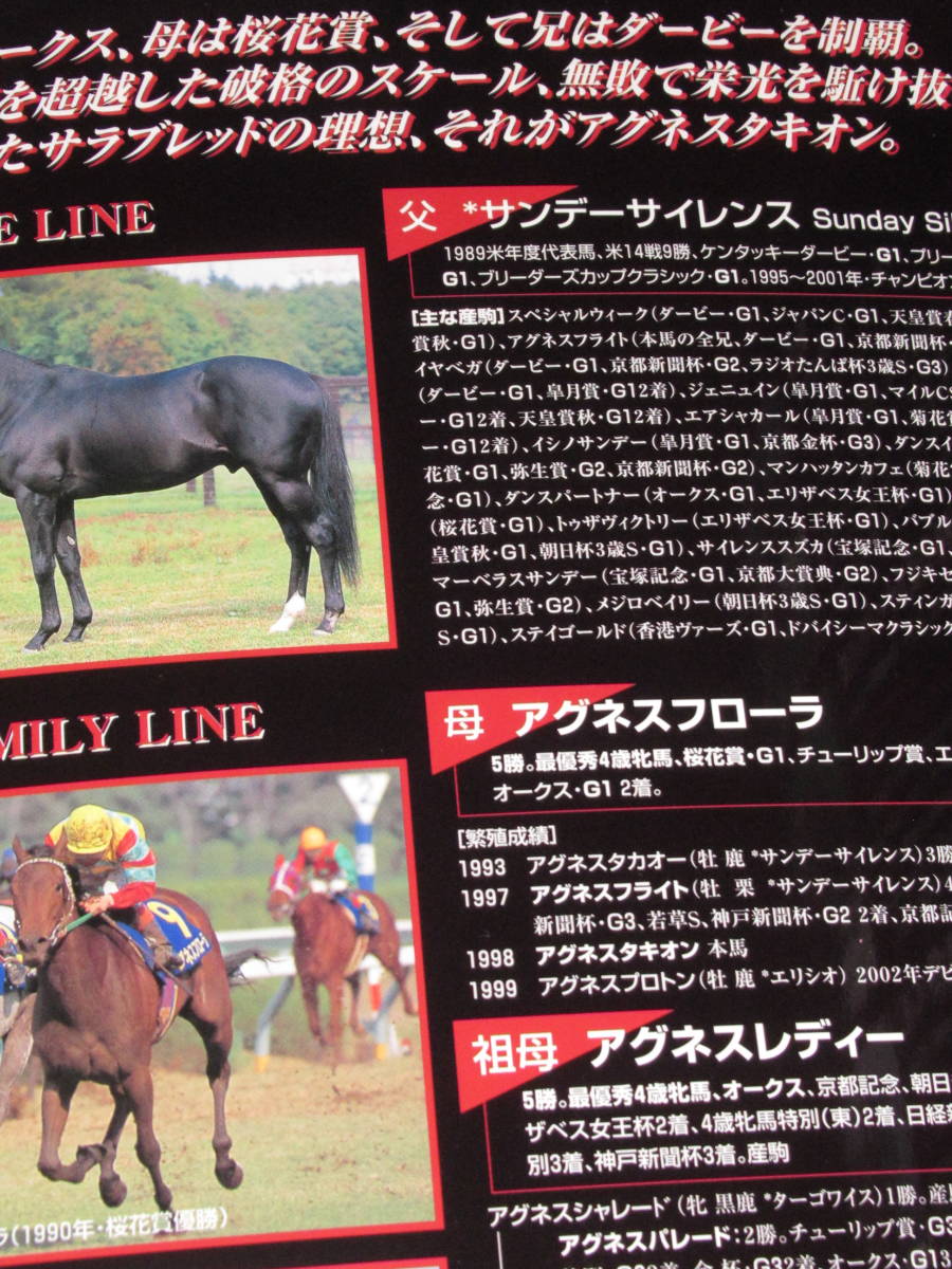匿名送料無料 非売品 種牡馬パンフレット ★アグネスタキオン カタログ 1998年生 社台ファーム生産 ☆皐月賞&弥生賞 優勝 4戦4勝 ★即決!