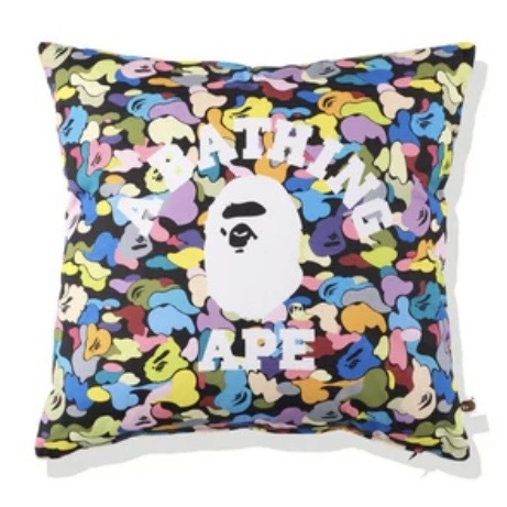 a bathing ape マルチカモ カレッジロゴ クッション ブラック です★