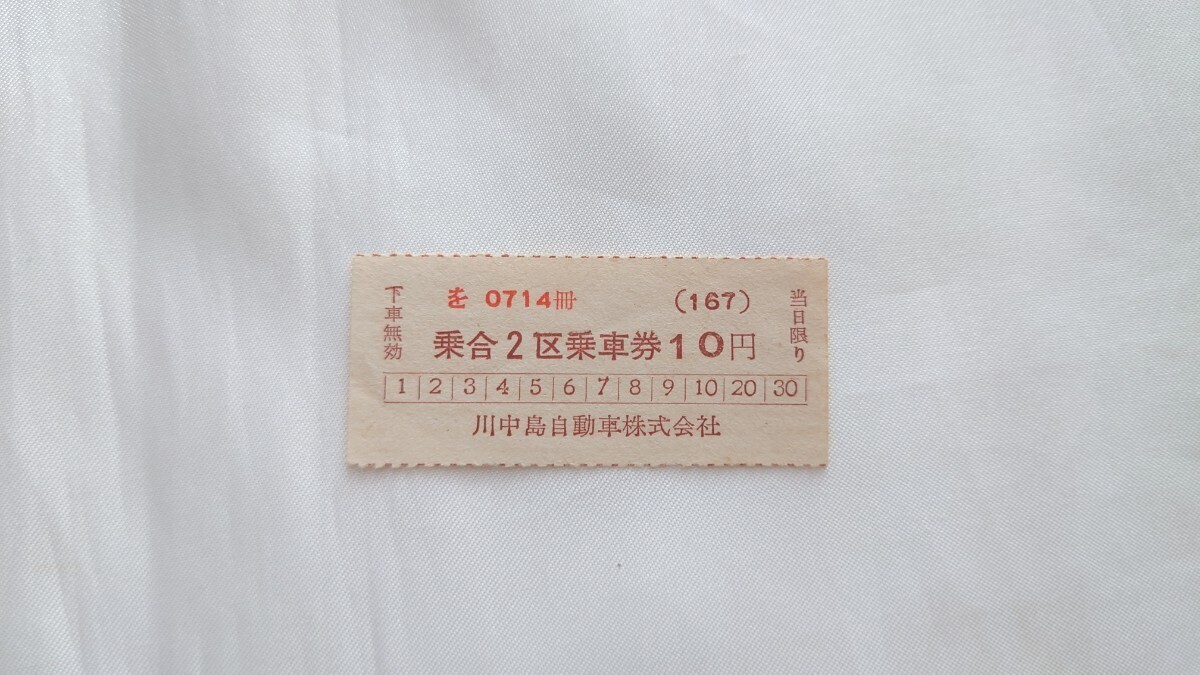 ▲川中島自動車▲乗合2区乗車券10円▲軟券 バス乗車券