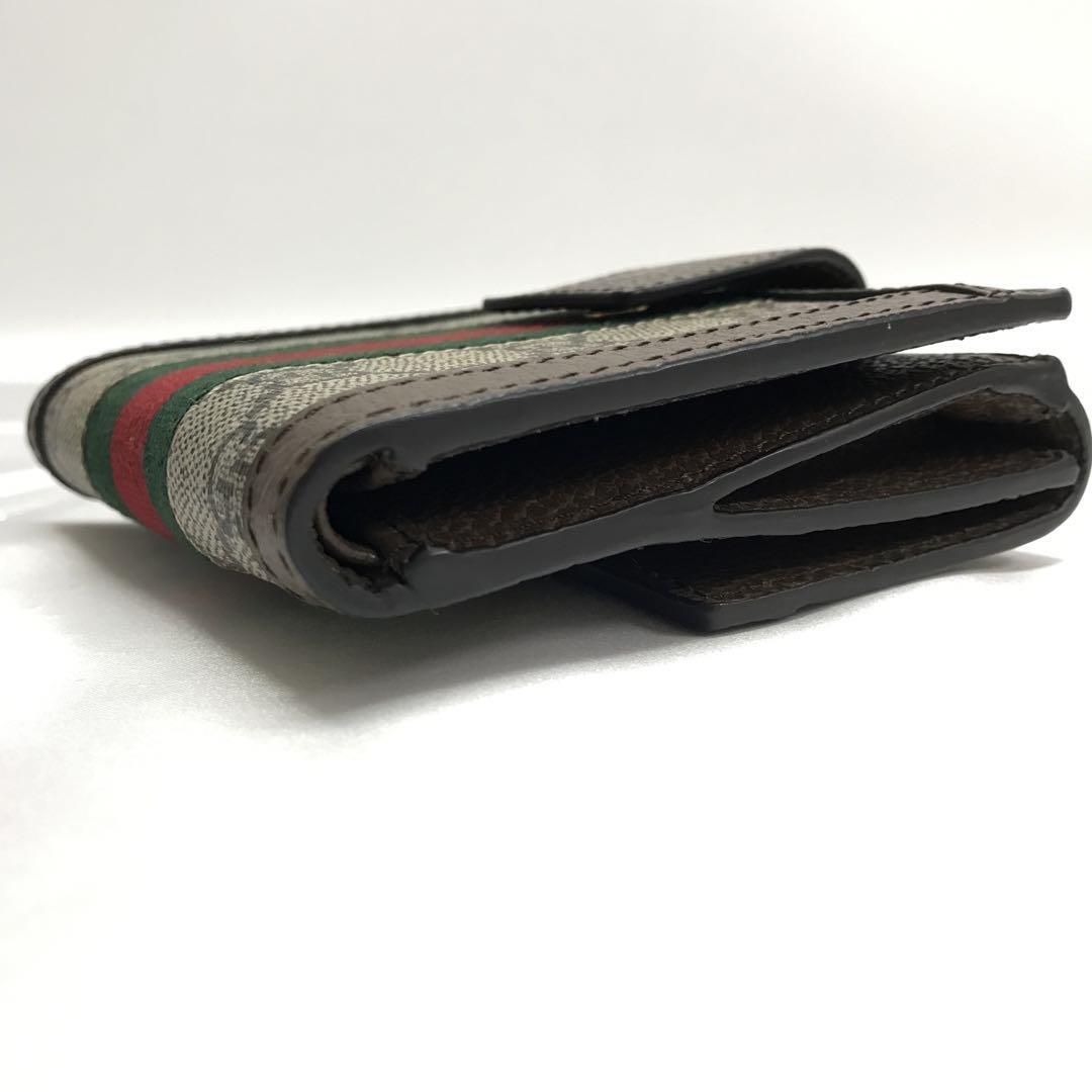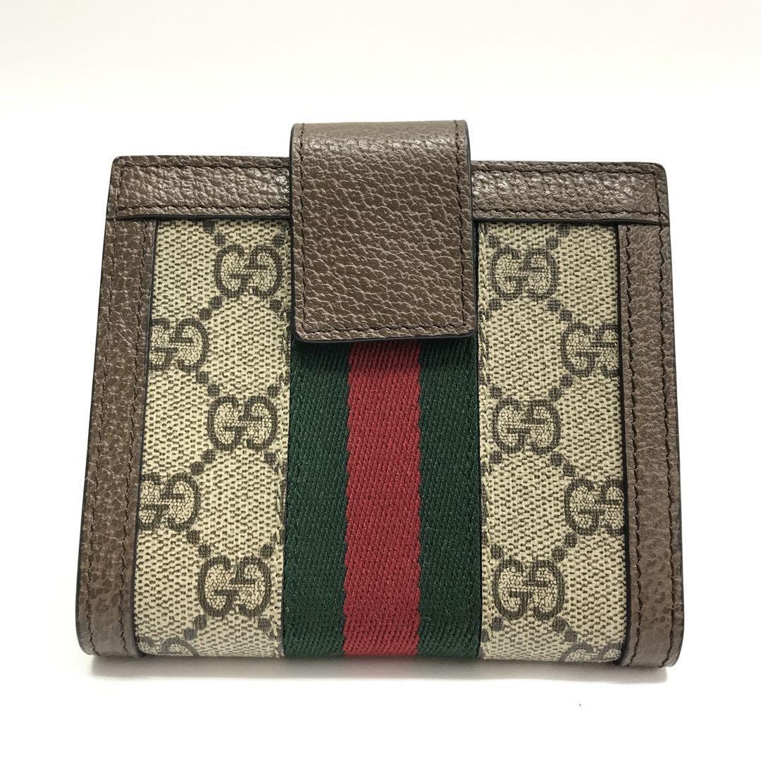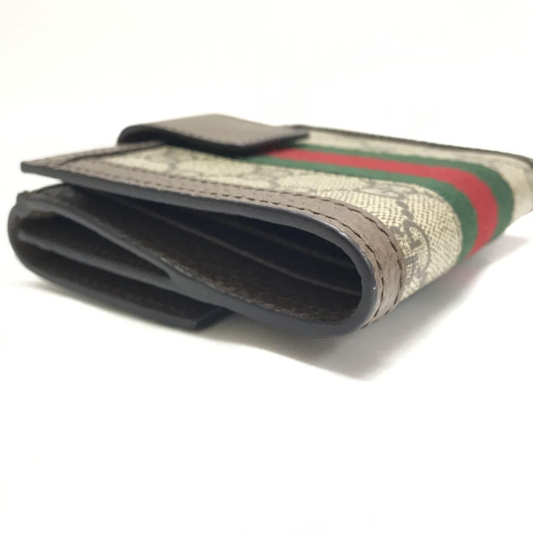 GUCCI グッチ GGスプリーム オフィディア シェリーライン ウェブストライプ 財布 二つ折り フレンチフラップウォレット コンパクト財布 コンパクトウォレット Wホック PVCコーティングキャンバス レザー ベージュ系 ブラウン系 レディース メンズ ユニセックス 男女兼用 ゴールド金具 523173 コンパクト財布