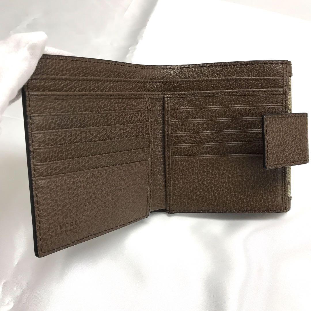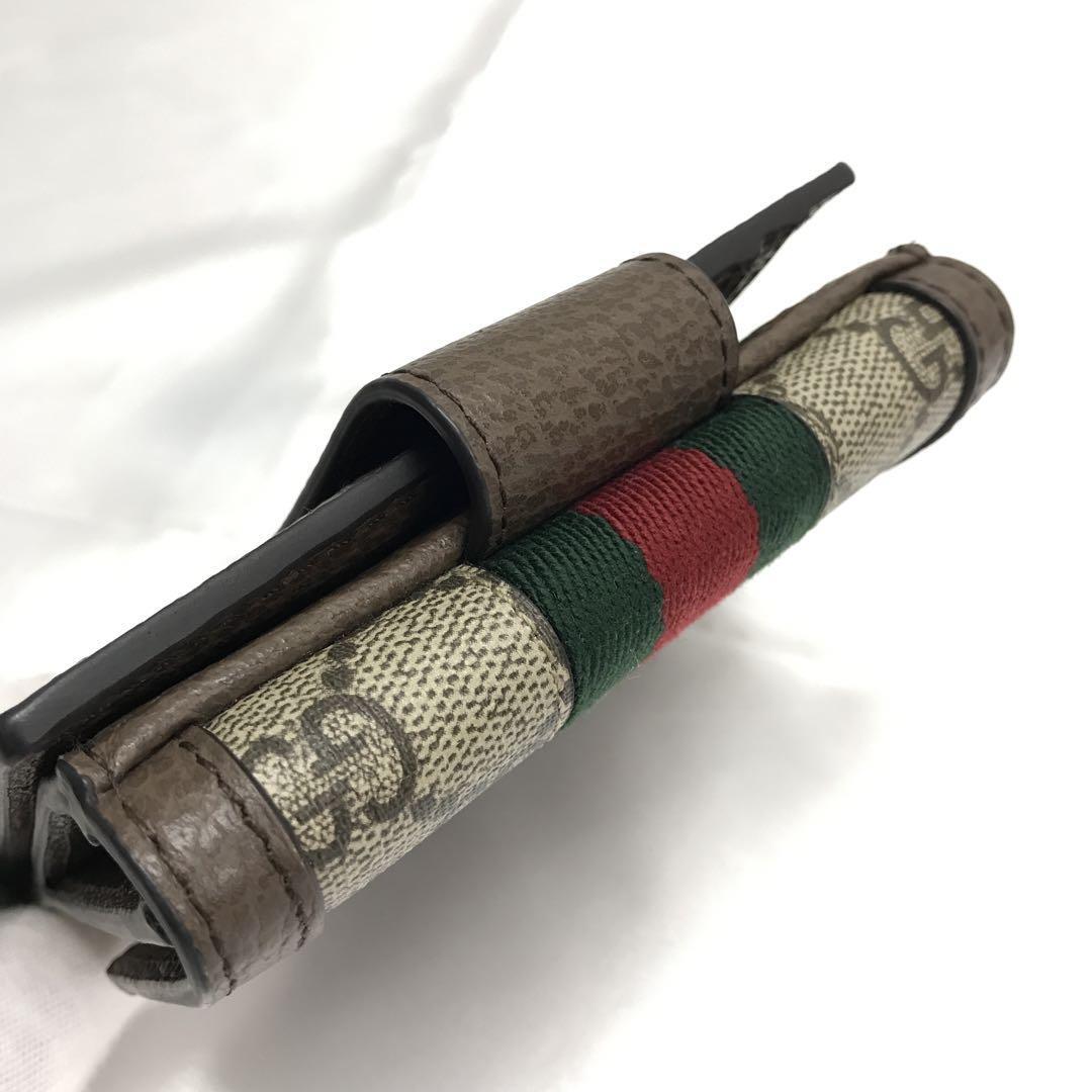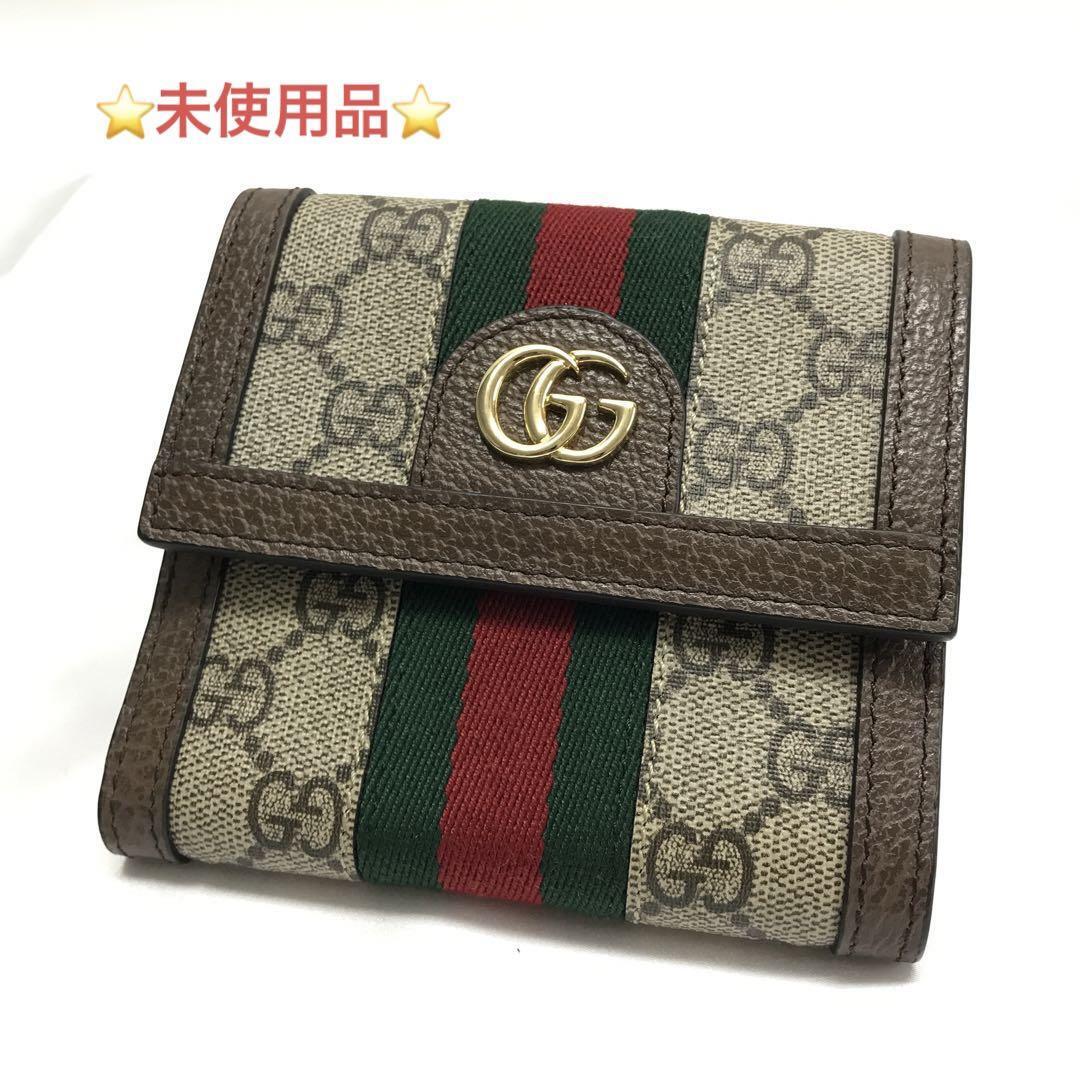 GUCCI グッチ GGスプリーム オフィディア シェリーライン ウェブストライプ 財布 二つ折り フレンチフラップウォレット コンパクト財布 コンパクトウォレット Wホック PVCコーティングキャンバス レザー ベージュ系 ブラウン系 レディース メンズ ユニセックス 男女兼用 ゴールド金具 523173 コンパクト財布