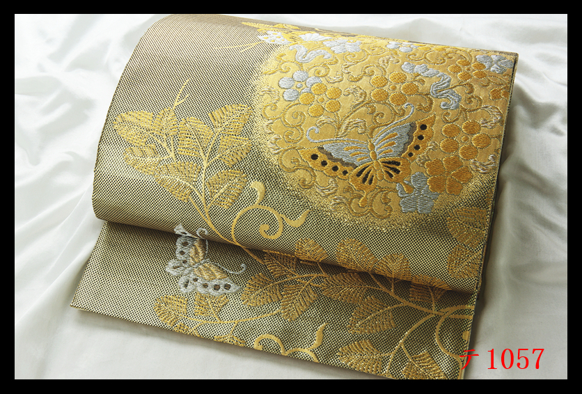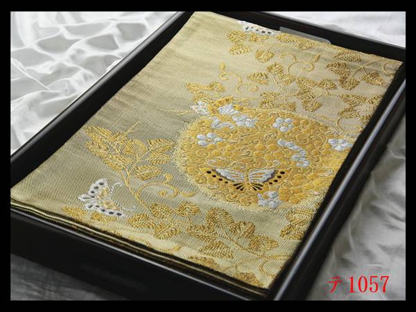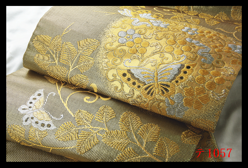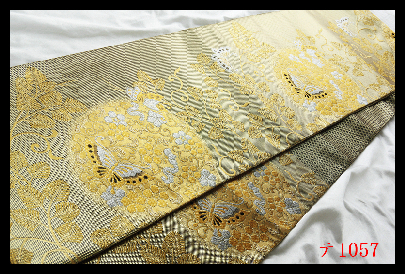 蔵【テ1057】西陣逸品 振袖可 唐草花蝶紋 華やぎの品格 正絹純金糸六通高級美術袋帯 ◇検◇簪着物名古屋帯和装小物帯締め