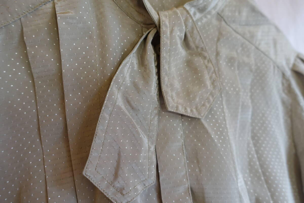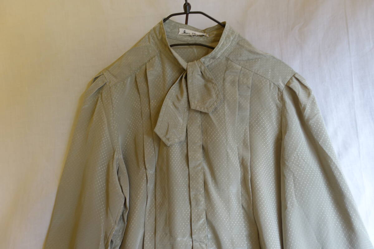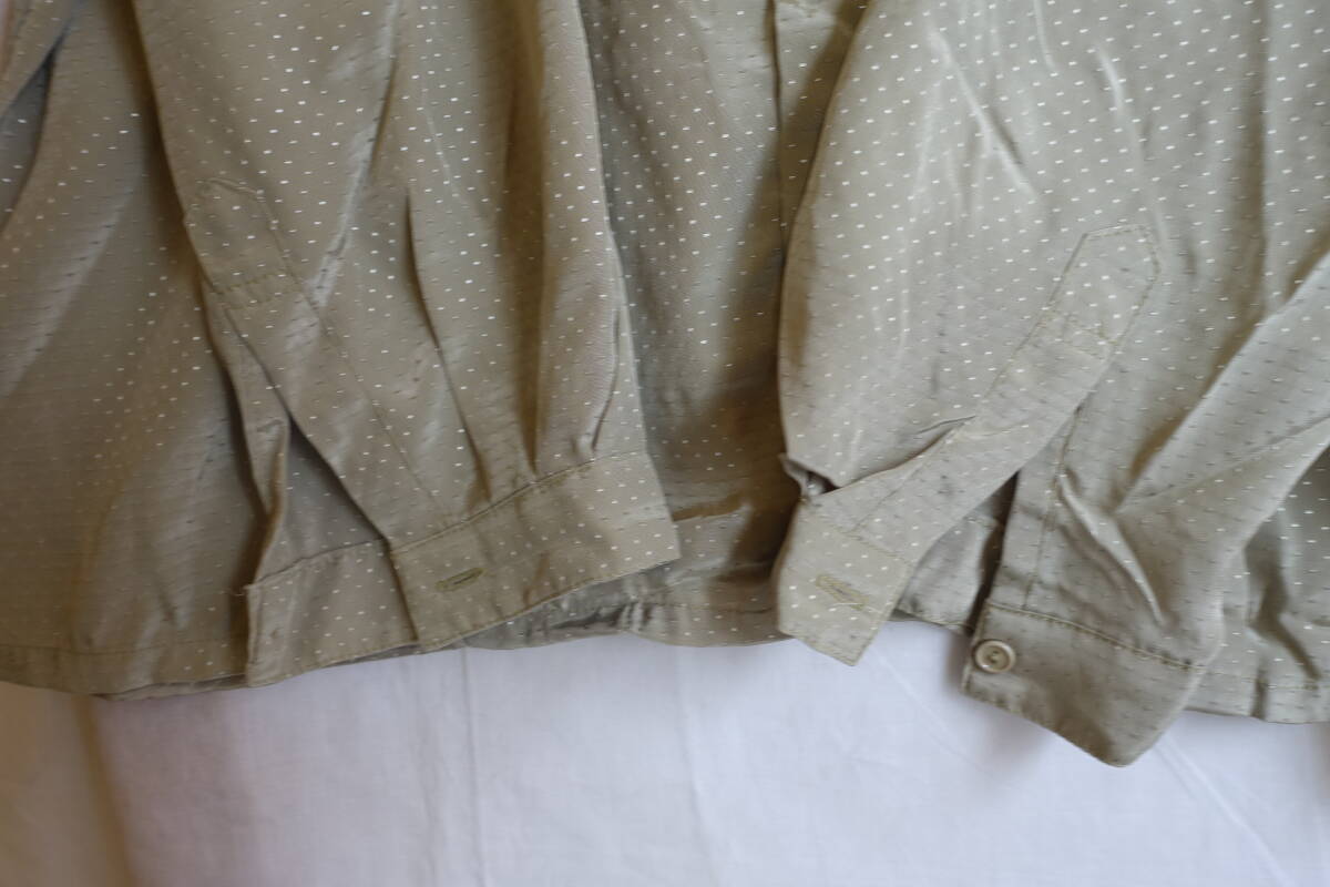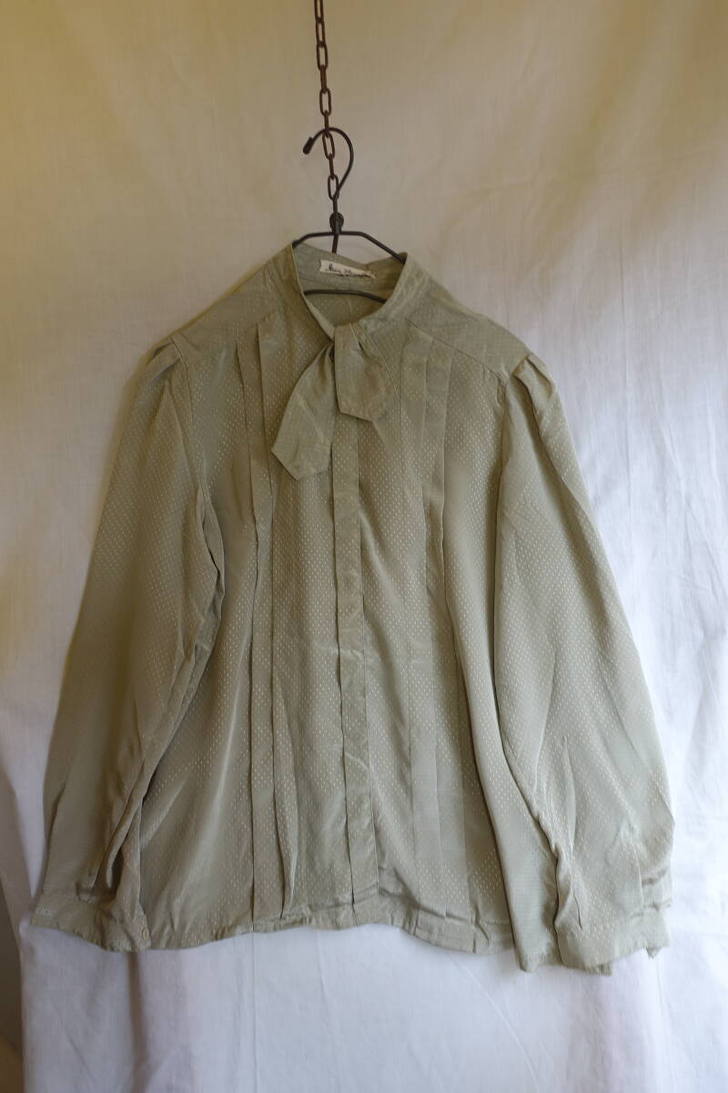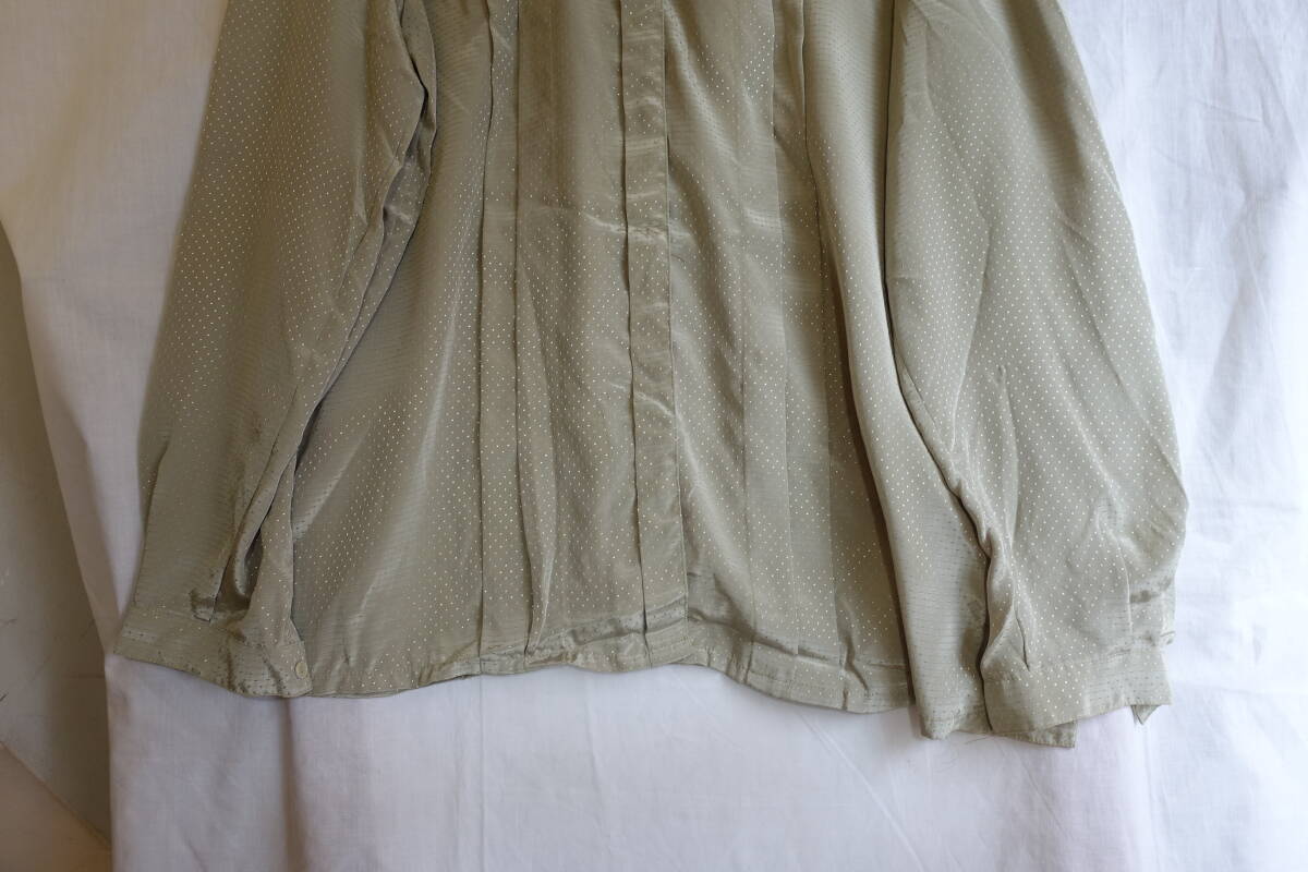 ○[70s80s90s vintage ヴィンテージ ドット ボウタイ 緑 レトロシャツ]USED古着 昭和レトロ・モダン・モッズ