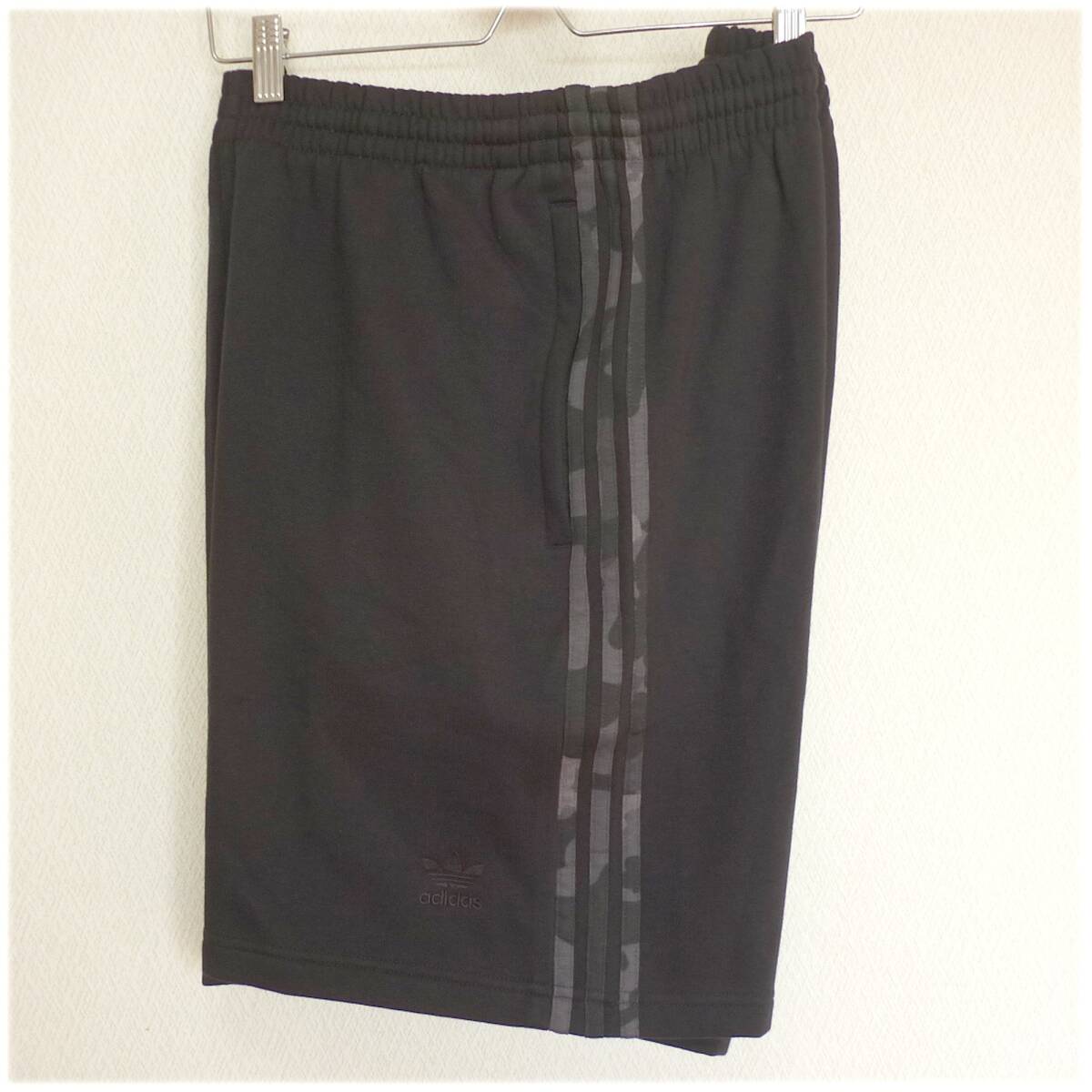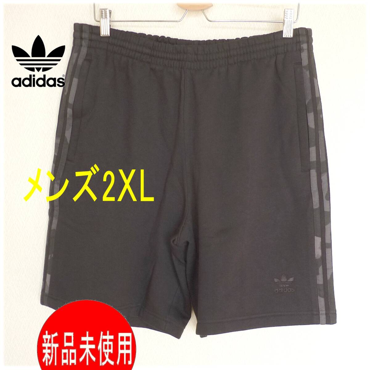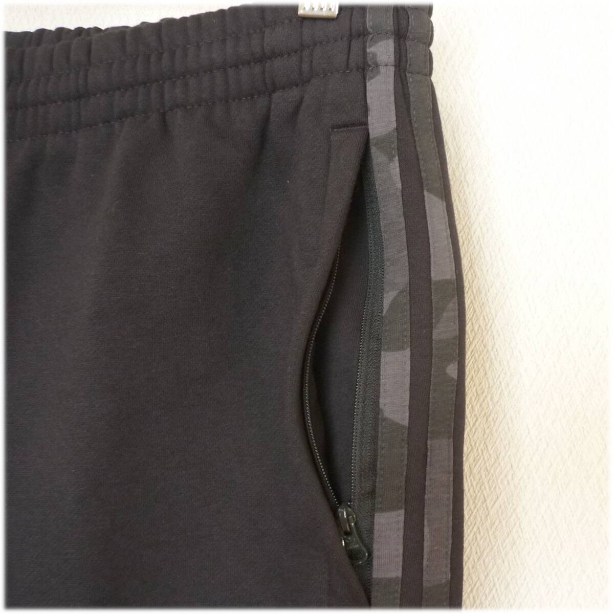 大きいサイズ2XL★アディダス定価8470円新品 黒 カモ柄3st 厚手メンズハーフパンツ 裏起毛 ジップ付きポケット