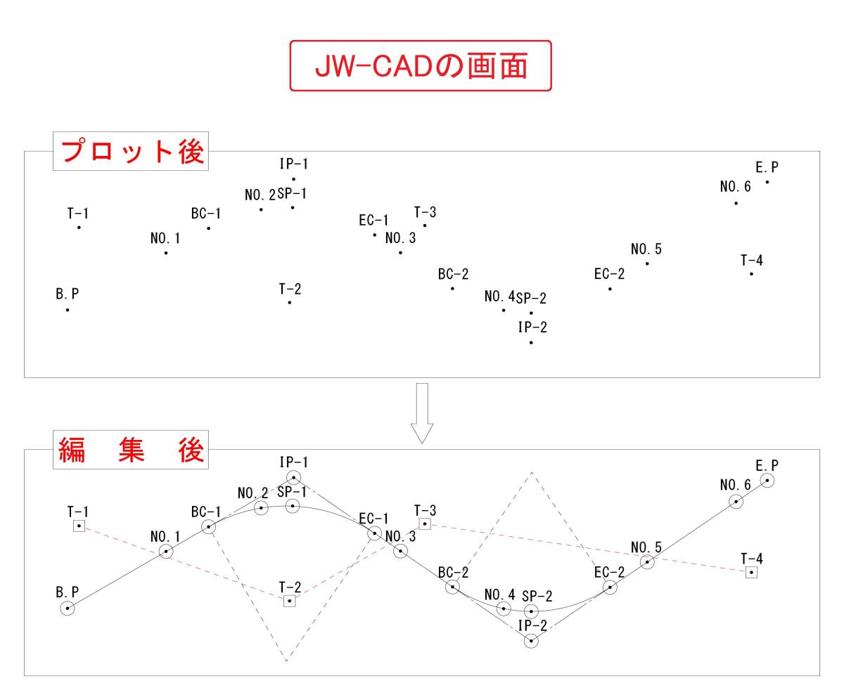 JW-CADをお使いの方は、座標位置 ( 測点名・X・Y  ) をJW-CADに転送させる事ができます。
