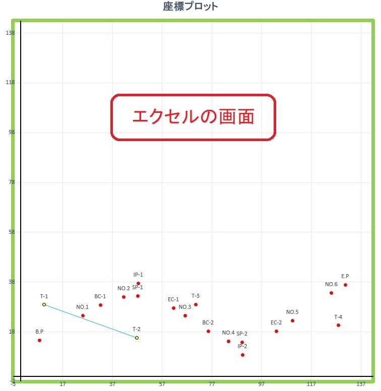 ※ エクセルの画面上で、座標位置を確認(座標プロット)できるようになりました。