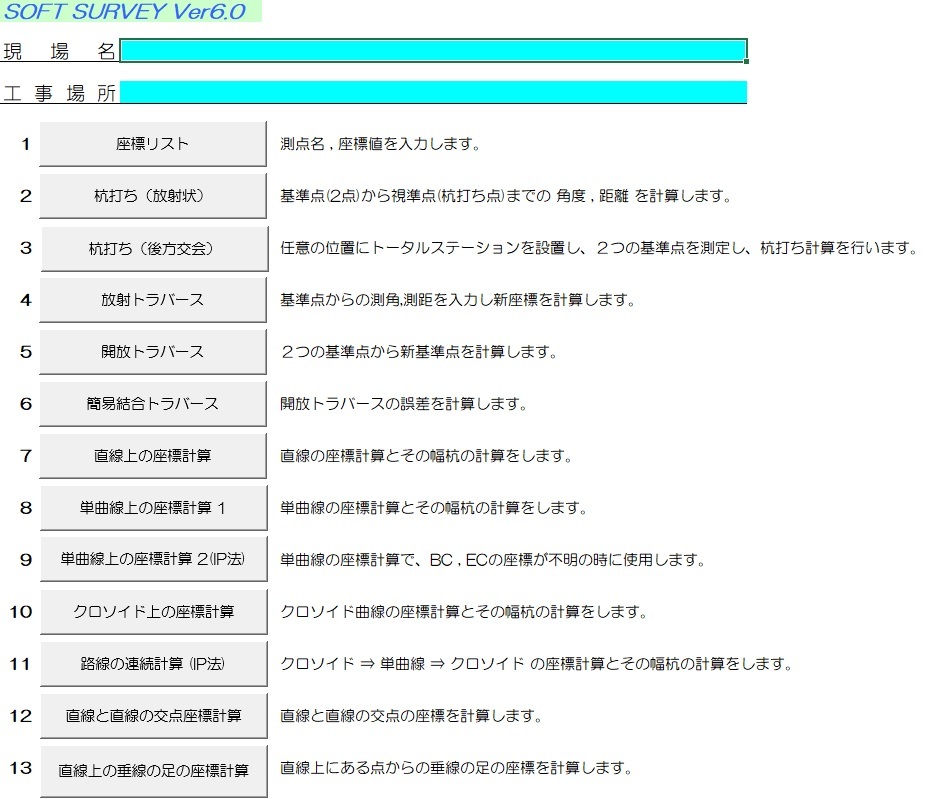 「SOFT SURVEY」は、エクセルで計算をする土木工事用測量座標計算プログラムです。