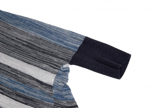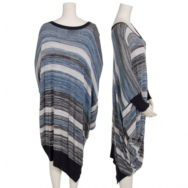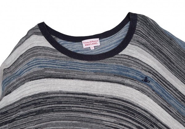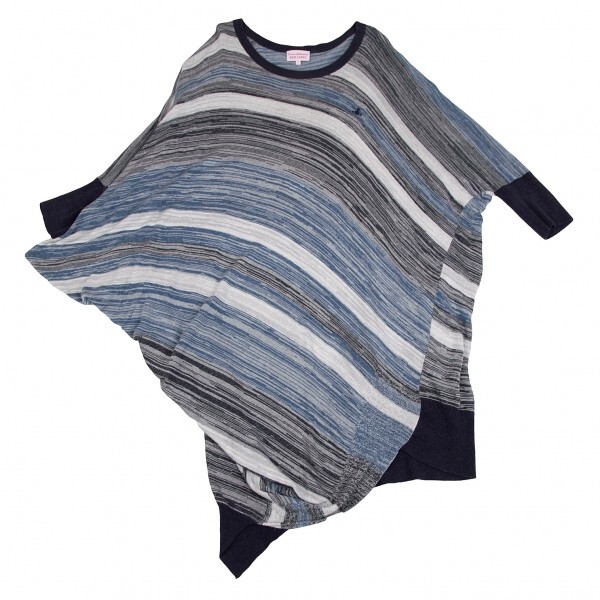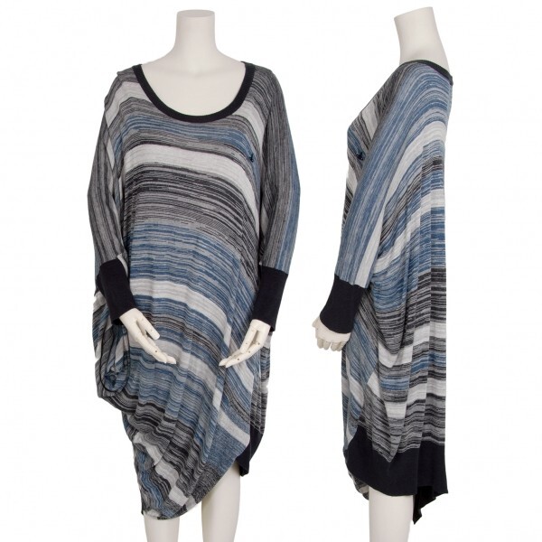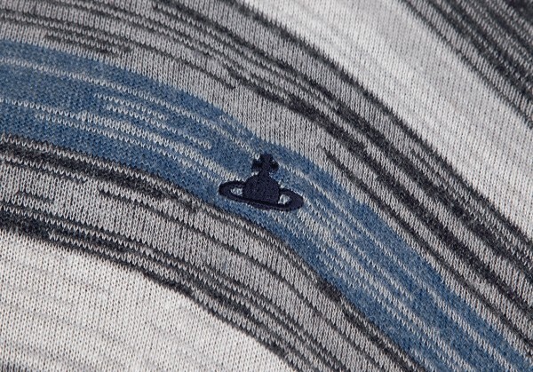 | ヴィヴィアンウエストウッド レッドレーベルVivienne Westwood Red Label レーヨンリネンオーブ刺繍ボーダーアシンメトリーオーバーサイズニットワンピース 青紺グレー2 |