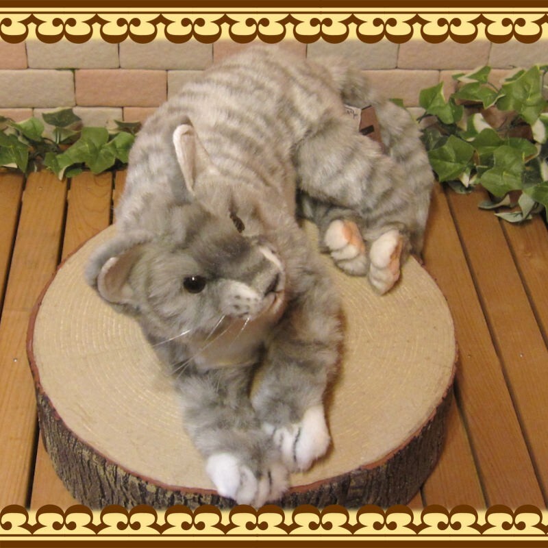 置物 動物 可愛い 猫 ぬいぐるみ リアル ねこ 寝そべりネコ グレー キャット アニマル モチーフ インテリア 癒し