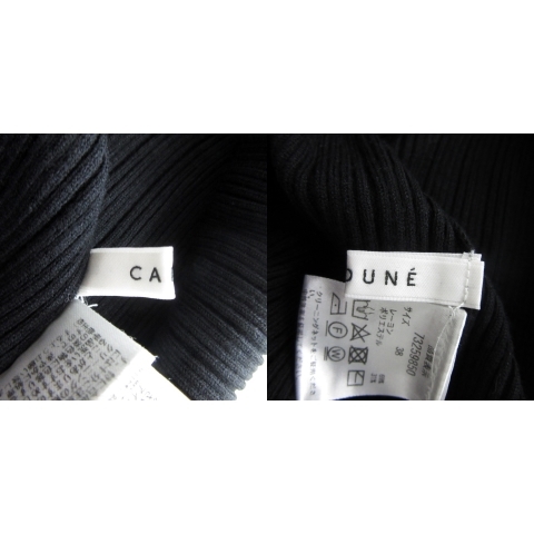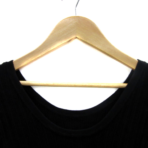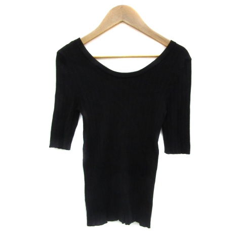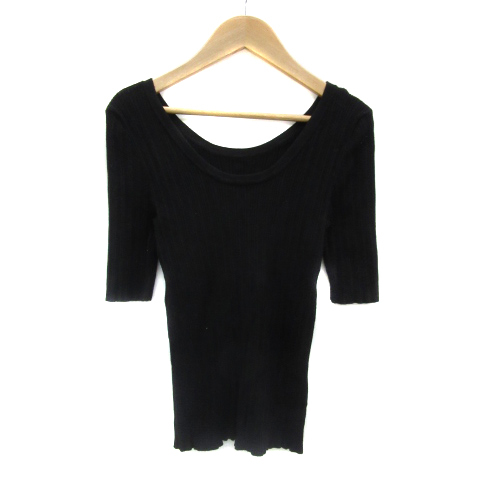 カデュネ CADUNE リブニット カットソー 五分袖 Uネック 無地 38 M 黒 ブラック /YS32 レディース
