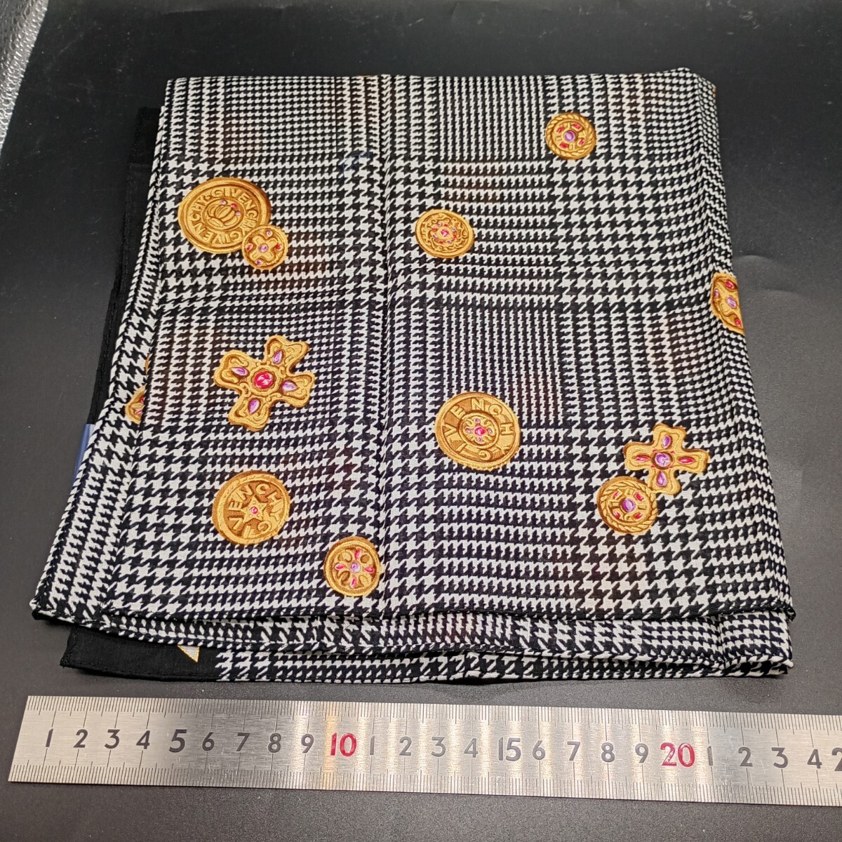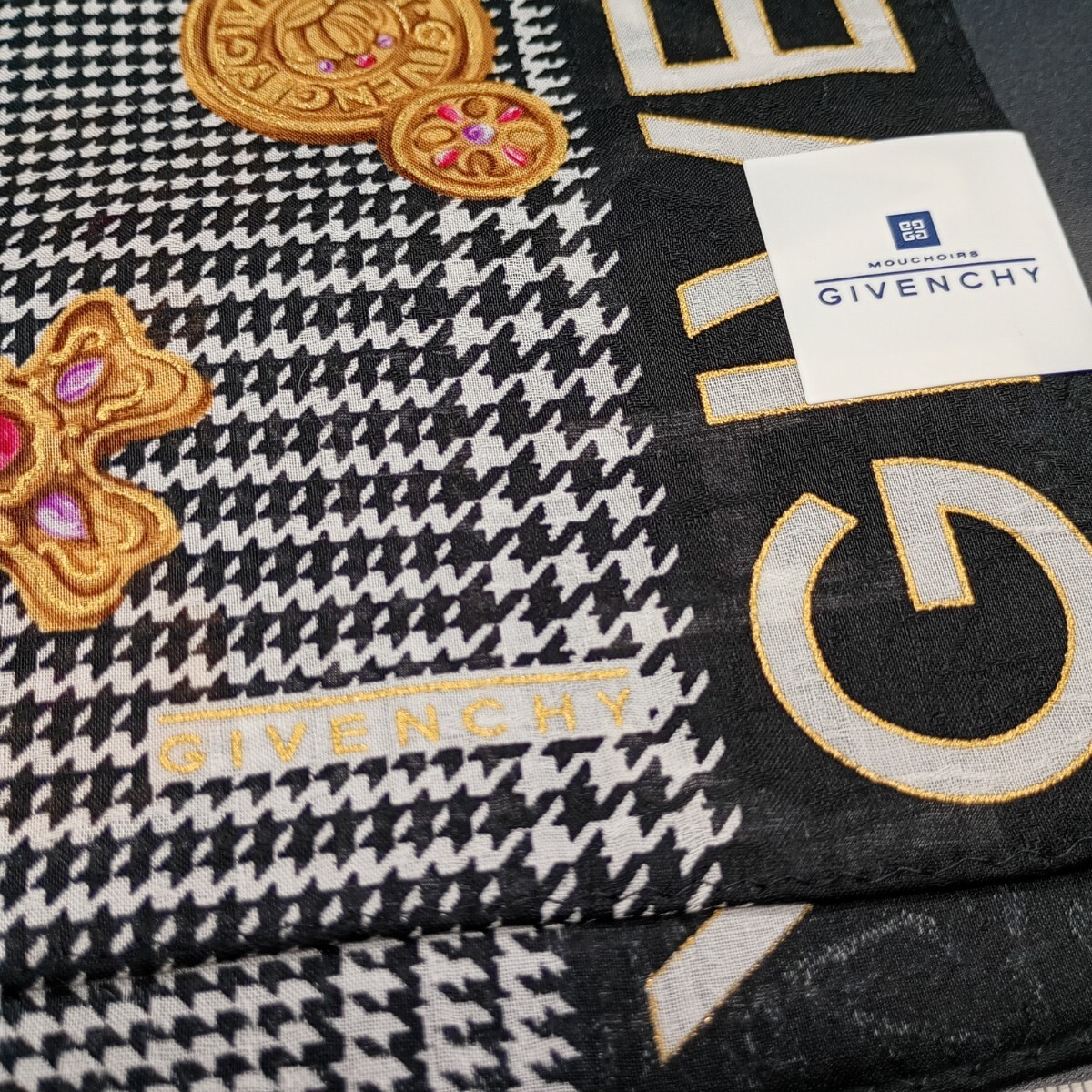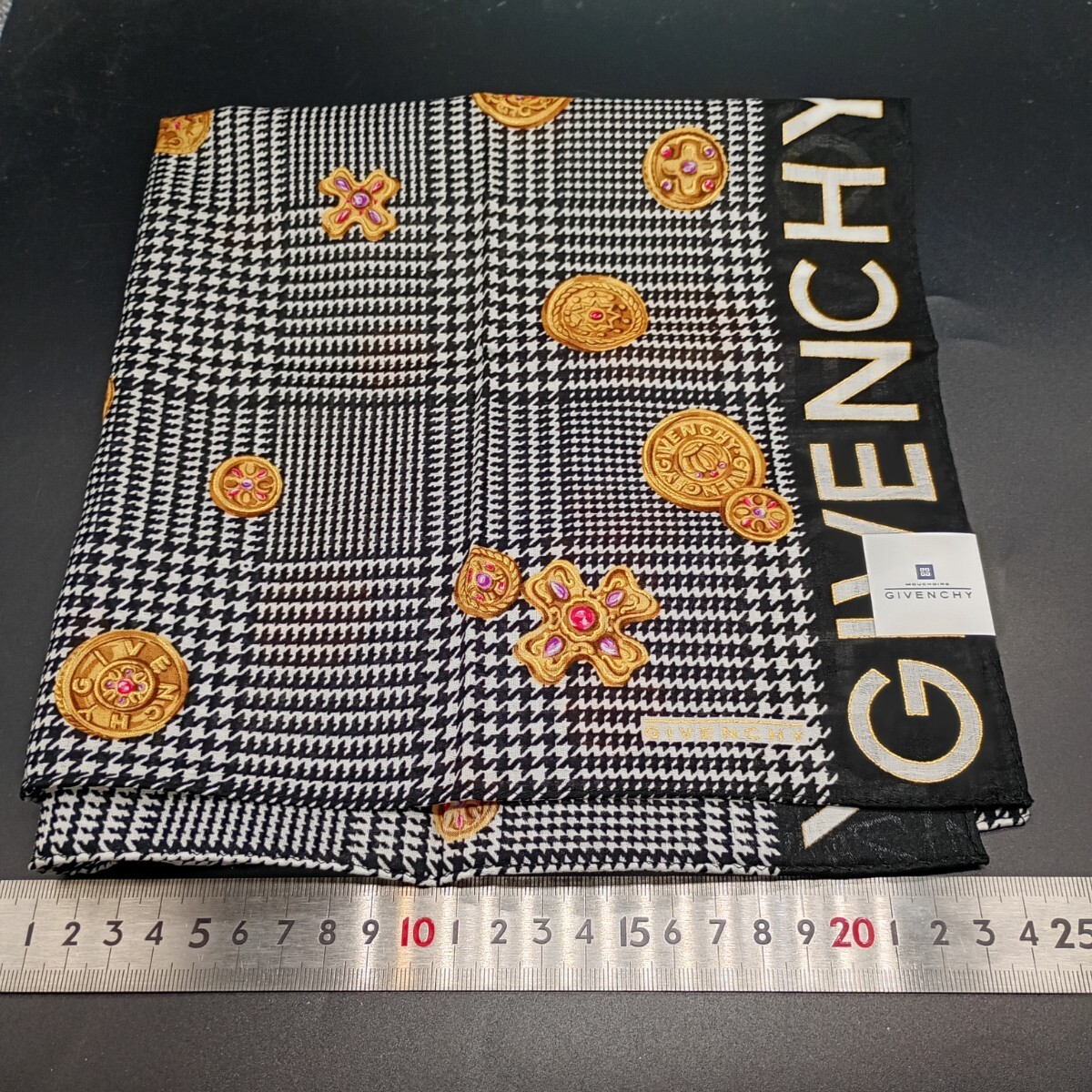GIVENCHY ジバンシィ ジバンシー  ハンカチ 千鳥格子 ボタン ブローチ ロゴ no.3016