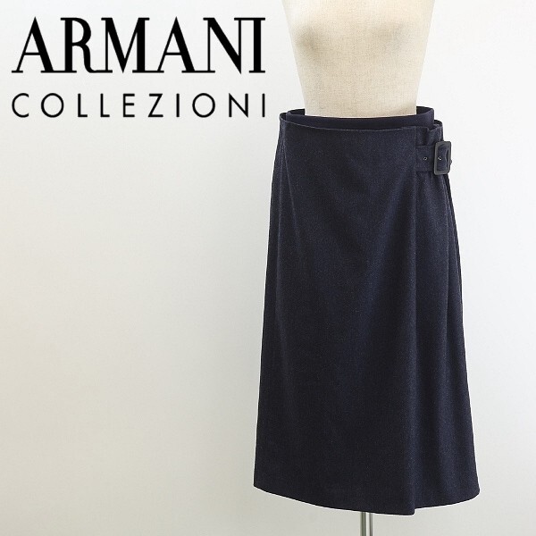 国内正規品◆ARMANI COLLEZIONI アルマーニ コレッツォーニ カシミヤ混 ストレッチ ウール サイドベルトデザイン スカート 紺 ネイビー 38 | |