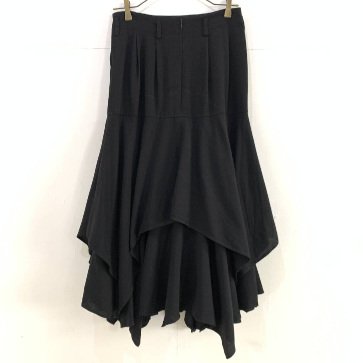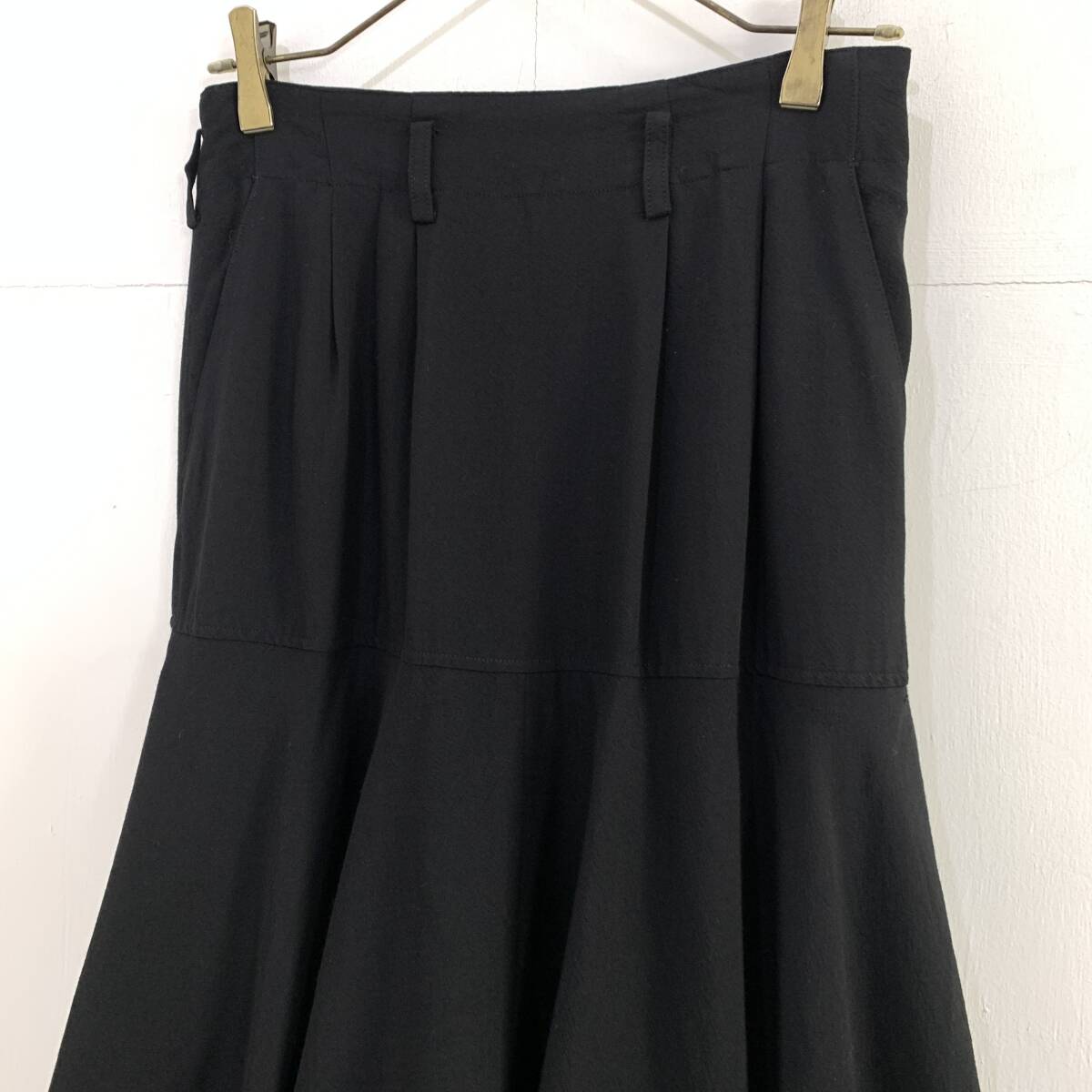 ☆INTERLINE AIRE アンテルリネエール 日本製 無地 毛×レーヨン ティアードスカート フレアスカート ブラック 古着【送料一律/同梱可能】L