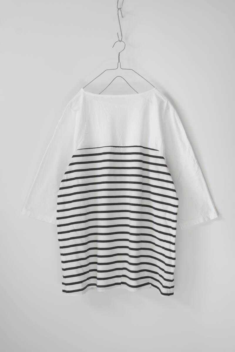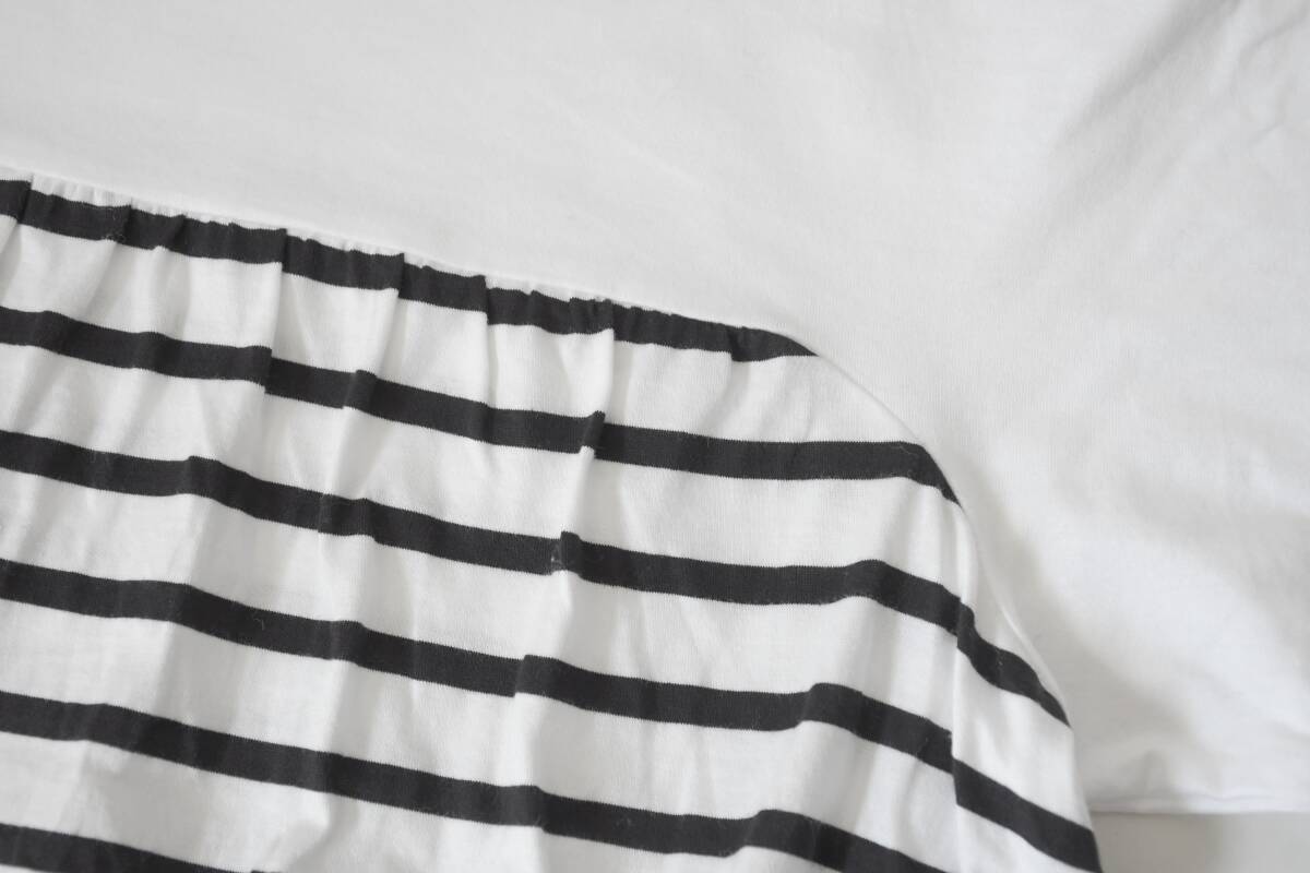 ボーダーの切り替え入りデザインで、ギャザーで立体感を出したリラクシーなシルエットに仕上がっています。