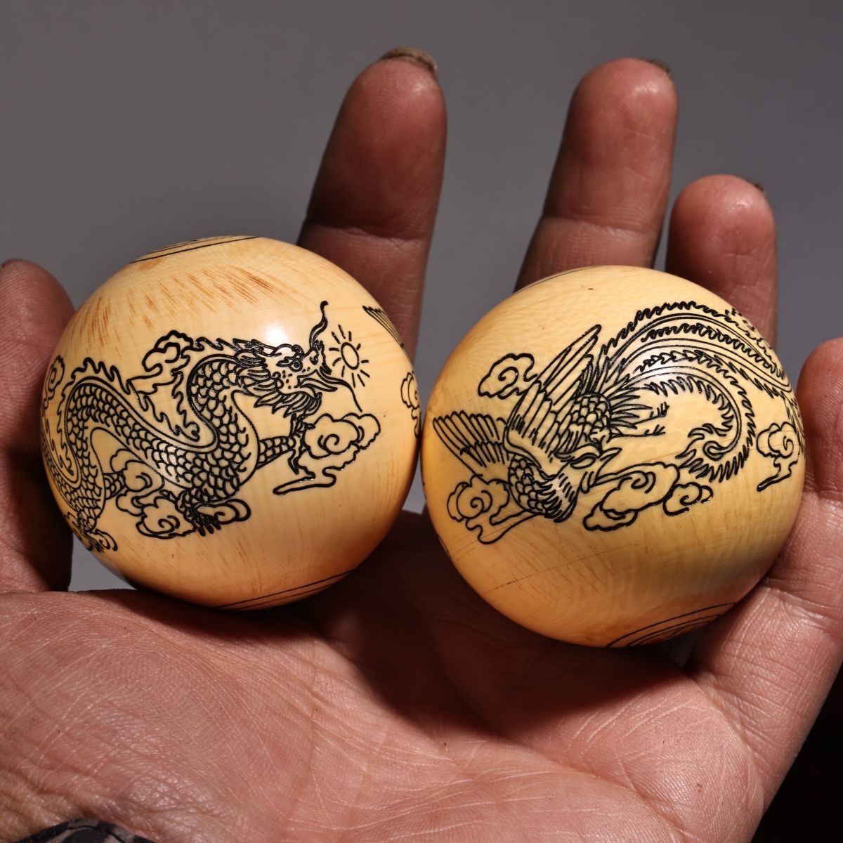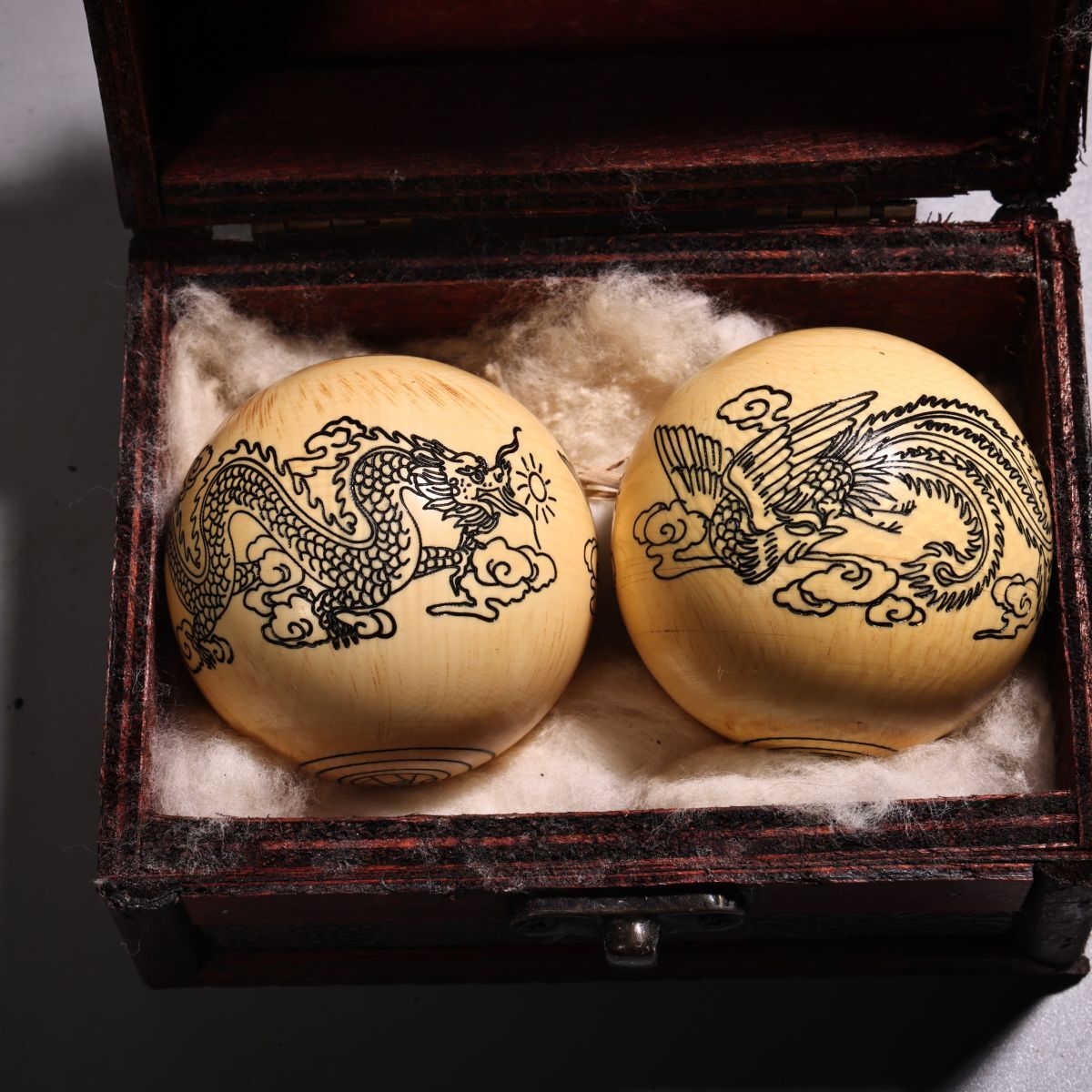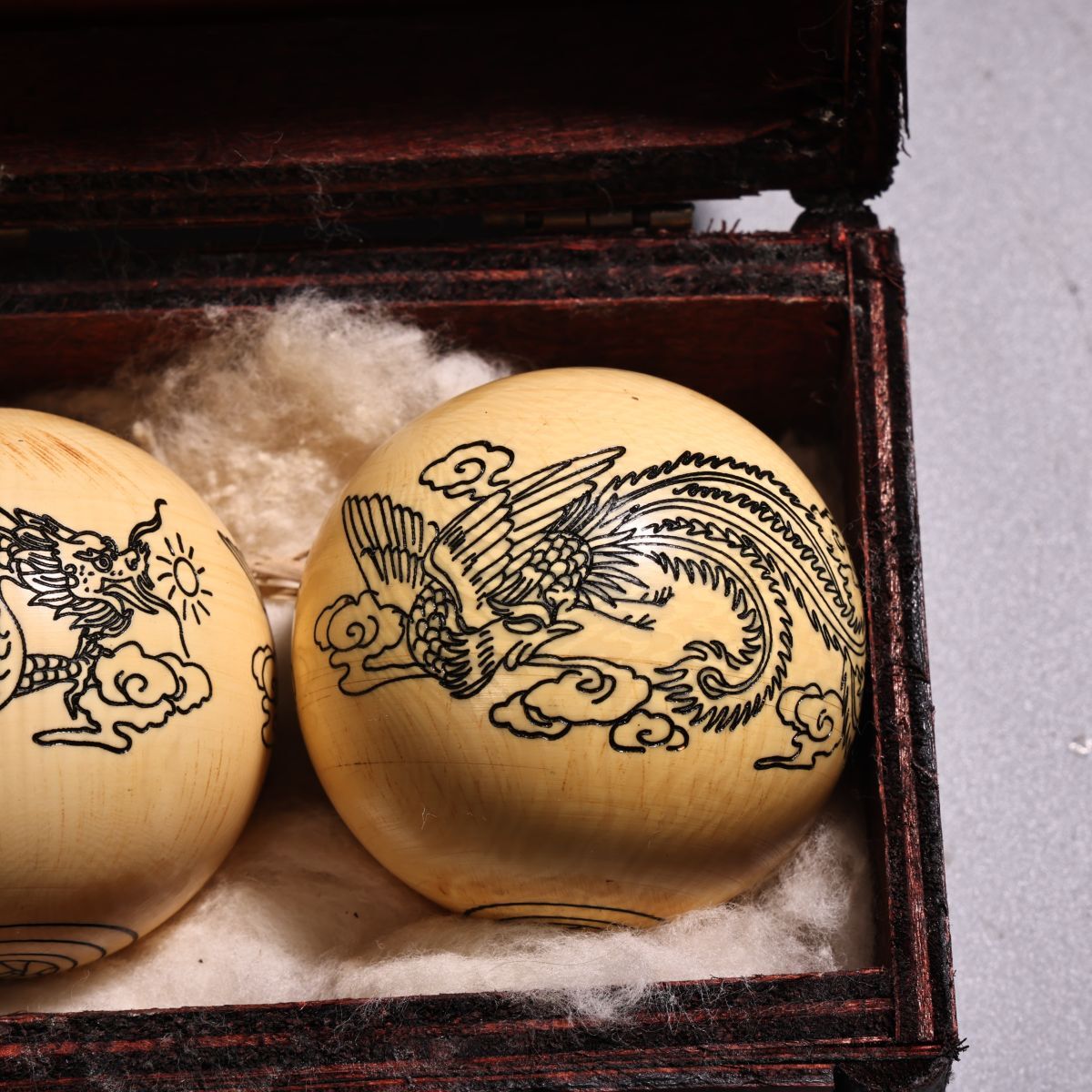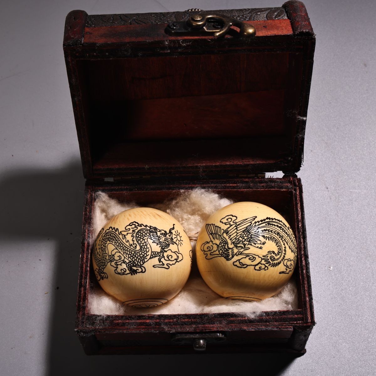 永し 清時代 天然材 特殊材 龍鳳手球 木盒 極細工 置物擺件 古美術品 時代物 古董品 収集 旧家蔵出 中国唐物 A249