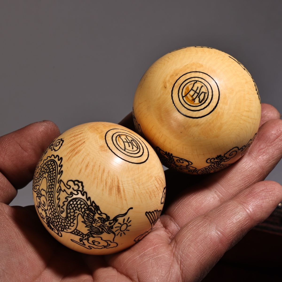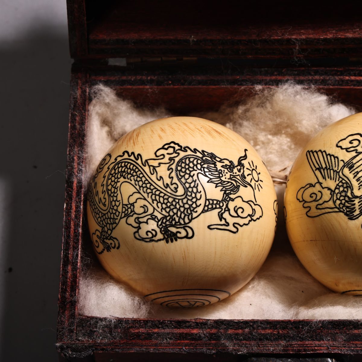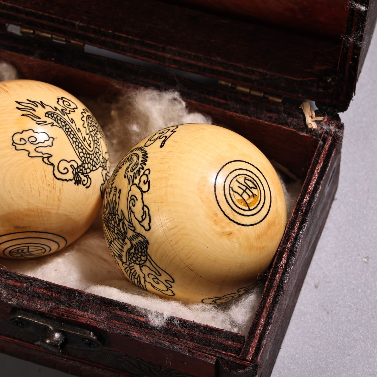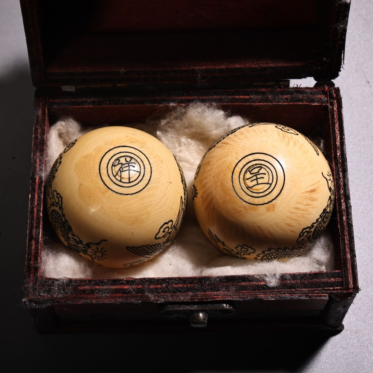 永し 清時代 天然材 特殊材 龍鳳手球 木盒 極細工 置物擺件 古美術品 時代物 古董品 収集 旧家蔵出 中国唐物 A249