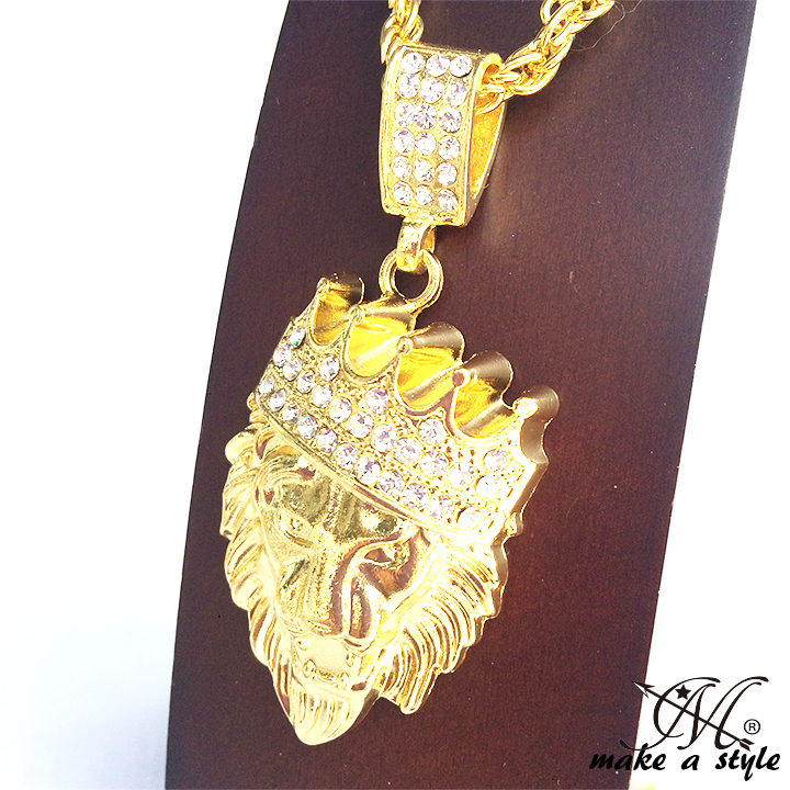 ライオン&王冠の黄金コンビのヒップホップネックレスです。