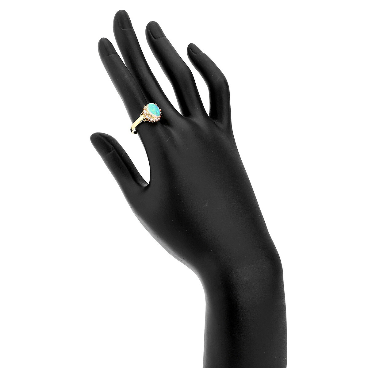 まるでオーロラを閉じ込めたかのように、見る角度によって表情を変えるオパールを異なるカットのダイヤモンドで囲んだ華麗なリング。指元に纏うだけで、ラグジュアリーな華やかさと存在感を放つ、芸術的な一品。