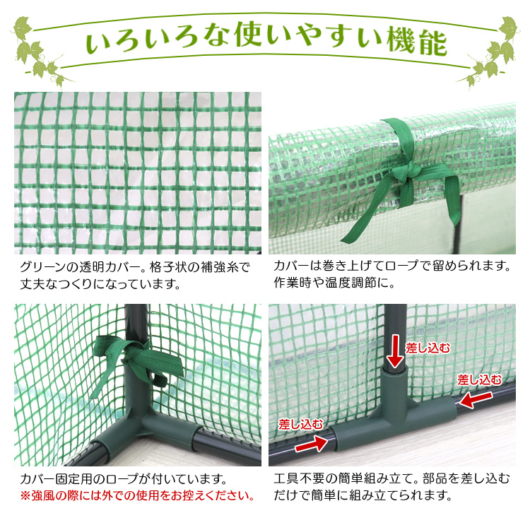 ・グリーンの透明カバーは格子状の補強糸で丈夫