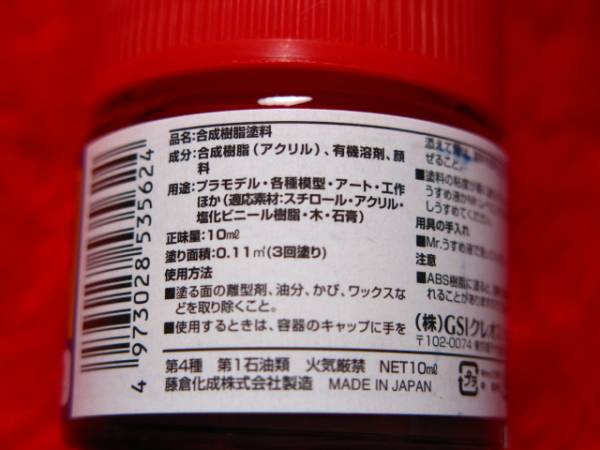 Mr.カラー 合成樹脂(アクリル)塗料 正味量=10ml 塗り面積=0.11平方メートル(3回塗り) プラモ、模型、工作他 アクセサリーの製作などに♪ ※パッケージデザインが写真と異なる場合があります ------------------------------------------------------ 弊店の出品商品は手持ち在庫品です 極々稀に入れ違いで売り切れてしまい間に合わない場合もありますがご了承下さい |