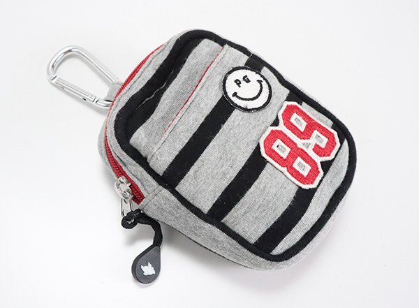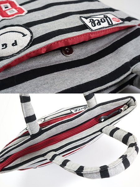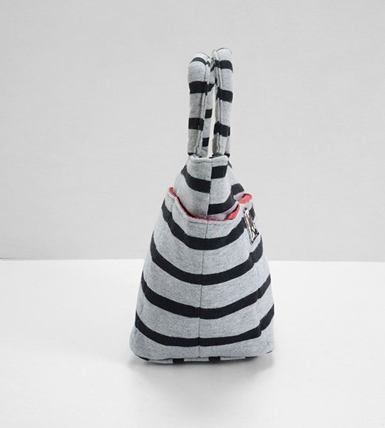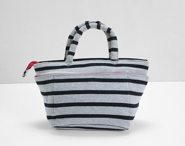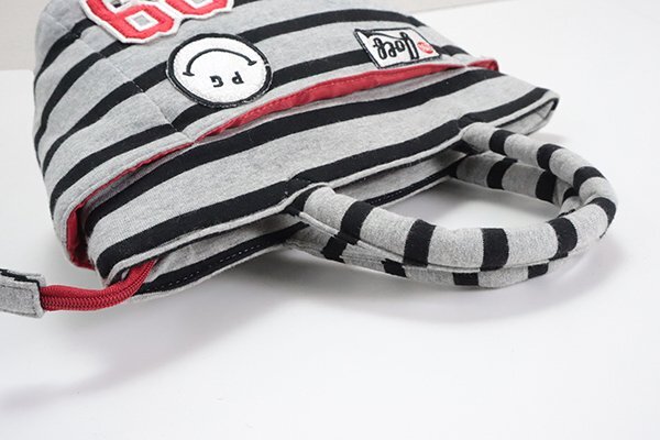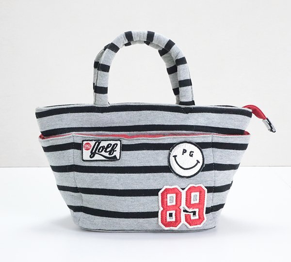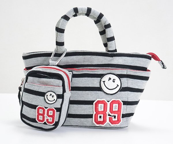 PEARLY GATES ボーダー ミニ トートバッグ グレー (ポーチ付き) ◆ スウェット地 スマイリー ハンドバッグ パーリーゲイツ ◆G041