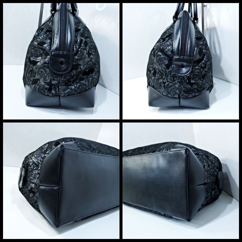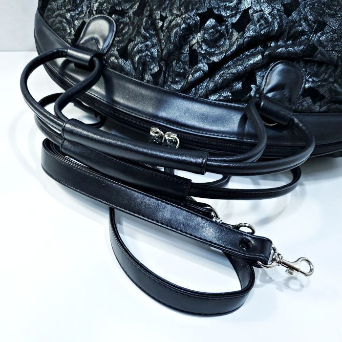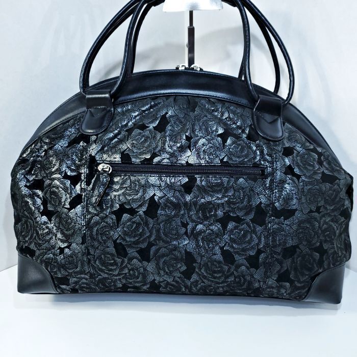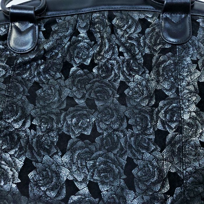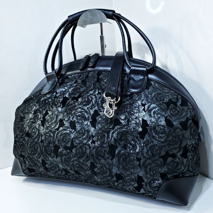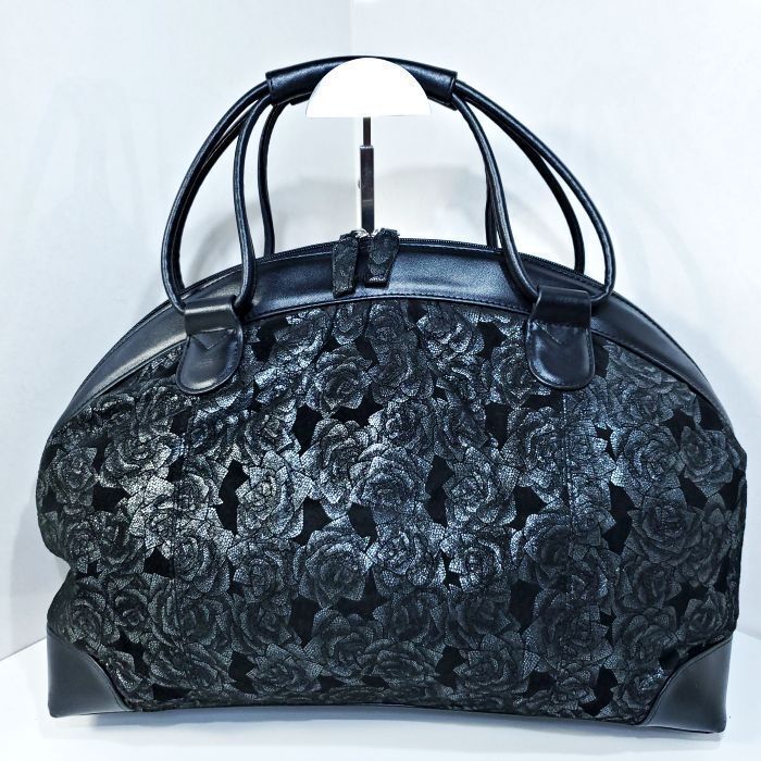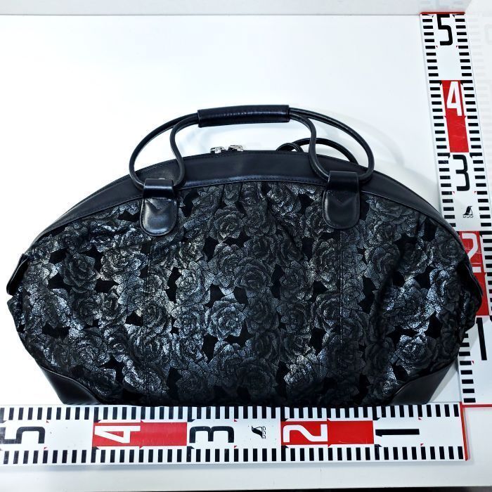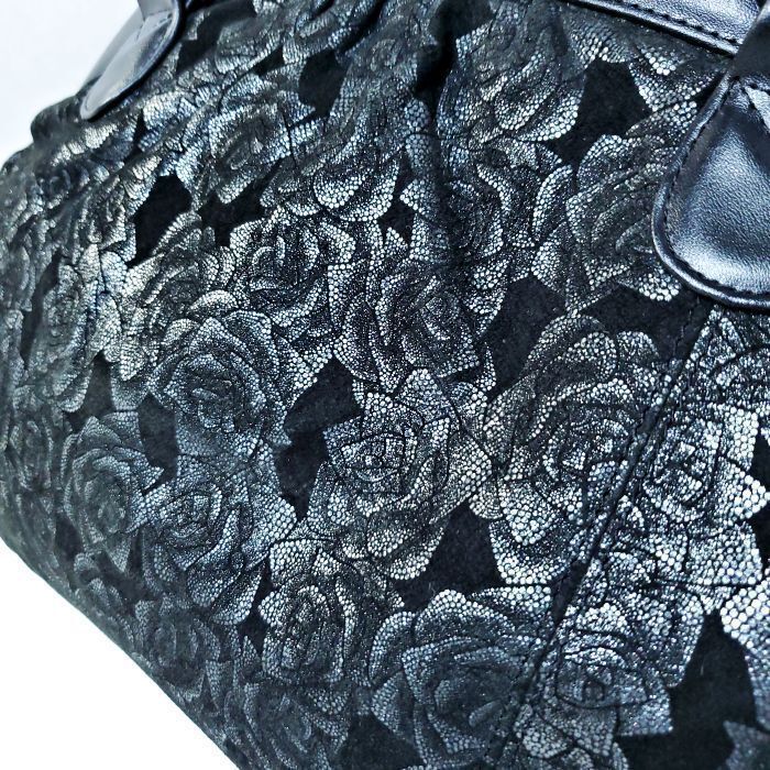 【アイテム】2way バラ柄 スエード レザー ボストンバッグ ショルダーバッグ ブラック 黒