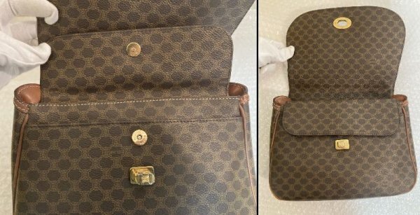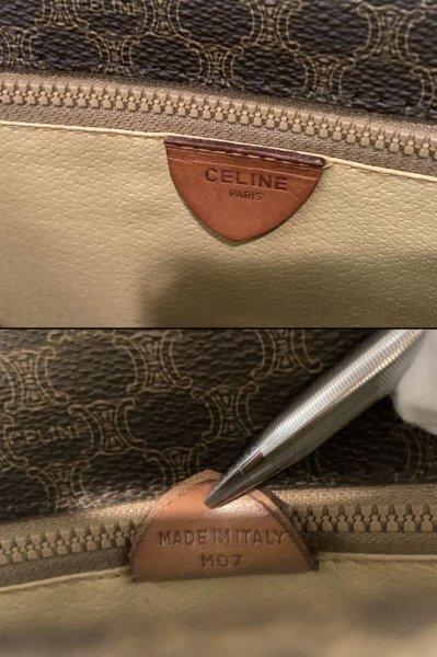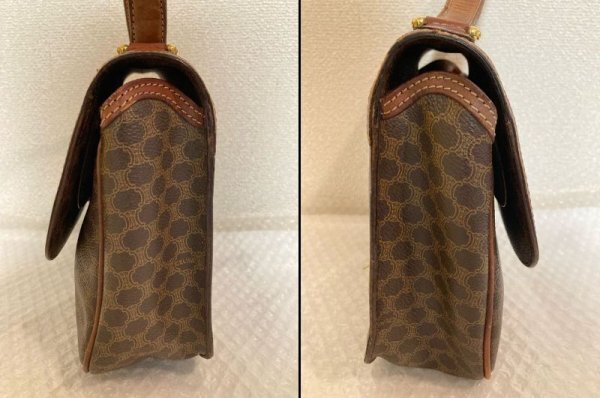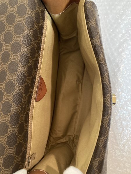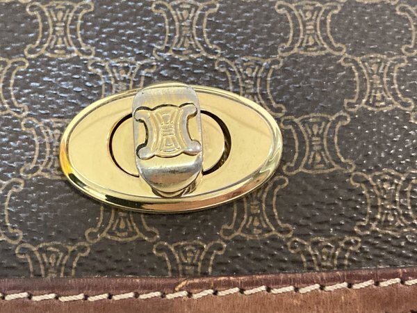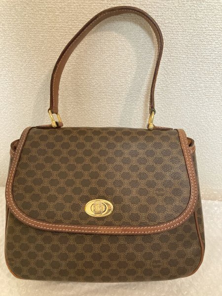 CELINE セリーヌ ヴィンテージ マカダム トリオンフ 柄 ターンロック レザー ハンドバッグ ショルダーバッグ 肩掛け 藤975 三