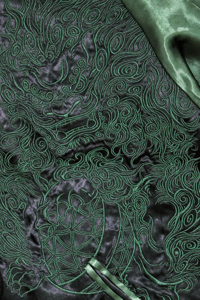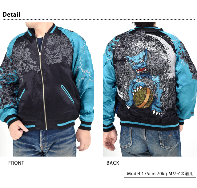 絡繰魂さんから「粋 唐獅子牡丹リバーシブルスカジャン(252024)」のご紹介です。 重みを感じる程の刺繍量が魅力的な絡繰魂から、最新作のスカジャンが登場しました。 今回モチーフの主役に採用されたのは、根強い人気を誇る唐獅子柄。 唐獅子と牡丹の鉄板の組み合わせで、迫力満点の一着を完成させました。 柄は身頃から袖へと続いており、実際に着用した際には身体のラインに沿って柄がより立体的に浮かび上がります。 また、今回のスカジャンはリバーシブル仕様になっています。 ボディーにはレーヨンサテンを使用し、ドレープや陰影がくっきりと現れています。 | ||||||||||||||||||||